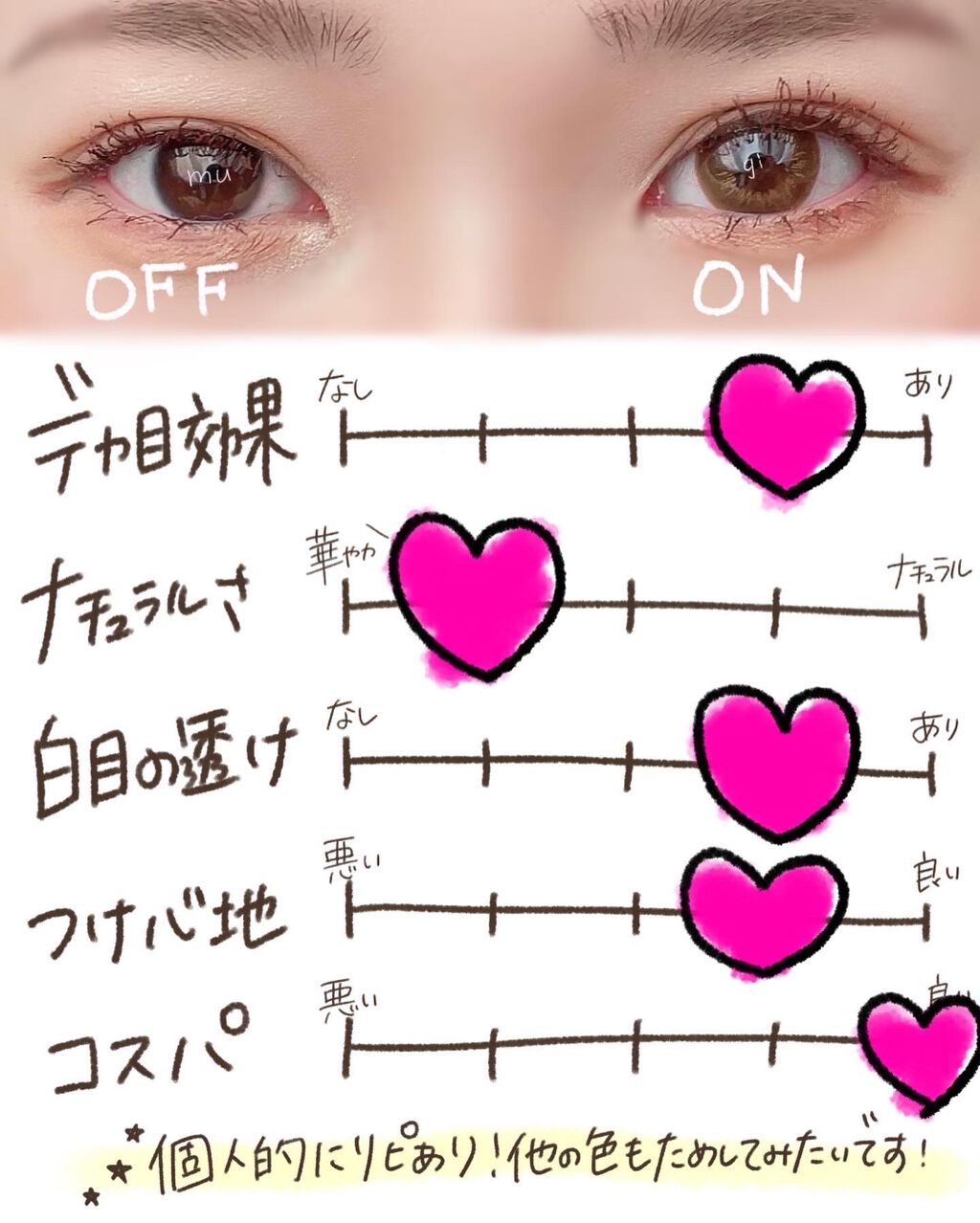 今回の推しはシェルサンドミルク! 同じ着色直径でも、グラデの仕方でここまでデカ目かどうかが変わってくると思わなかったです😳良い勉強になりました🌟 コスパを考えるとシェリのままでいいかなと思ったので、リピートはしないと思います😢かわいいんだけどね...!