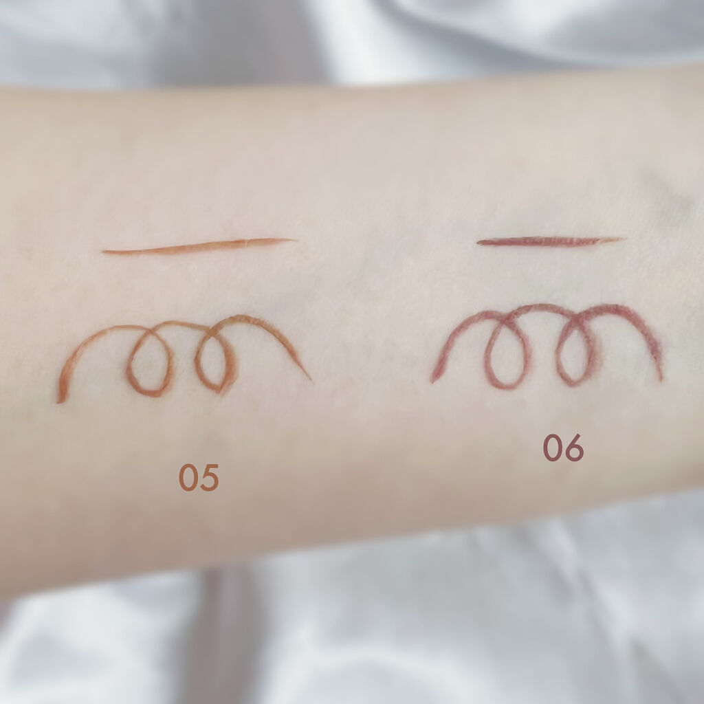 今までみんなご存知のジューシーラスティングティントも愛用してますが 自分的にはかなり高級感がアップした↑ 実物みて感動するぐらいめっちゃ好きなパケ😭🌷 名前通りピーチカラーでイエベさん絶対買って欲しいかわいい色です❤️ イエベさんでも簡単に使えるローズカラーで デートにおすすめなお色です◎ オレンジブラウンカラーで 塗ったら一気にオシャレになれるし秋にぴったりなカラーです🍁 正直。既存のジューシーラスティングティントと似てるような質感ですが くちびるに塗ると新作のほうが若干塗りやすくなった気がします 色持ちは相変わらずめっちゃ良いです◎ 画像の7枚目からはスウォッチ、参考になればと思います。 ティッシュで擦っても色はちゃんと残ってる 既存のティントリップは甘いキャンディな匂いがしたが、 今回の新作は少し匂いもしますが、嫌な甘い匂いではない。 匂い人それぞれ感覚違うですけど、個人的には結構大丈夫だし、むしろ前の商品より好き♡