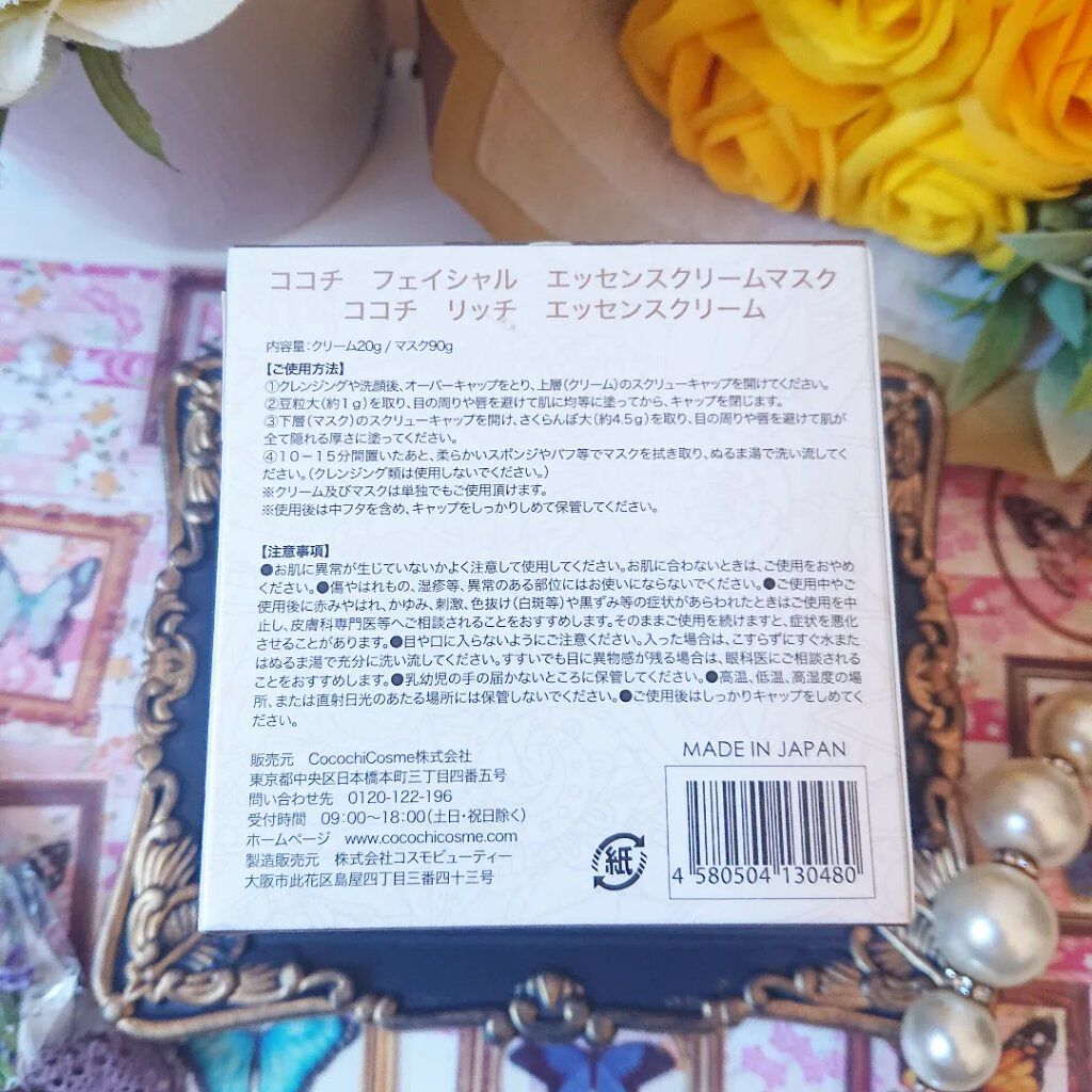 - 内容量: ココチ リッチ エッセンスクリーム 20g ココチ フェイシャル エッセンスクリームマスク 90g