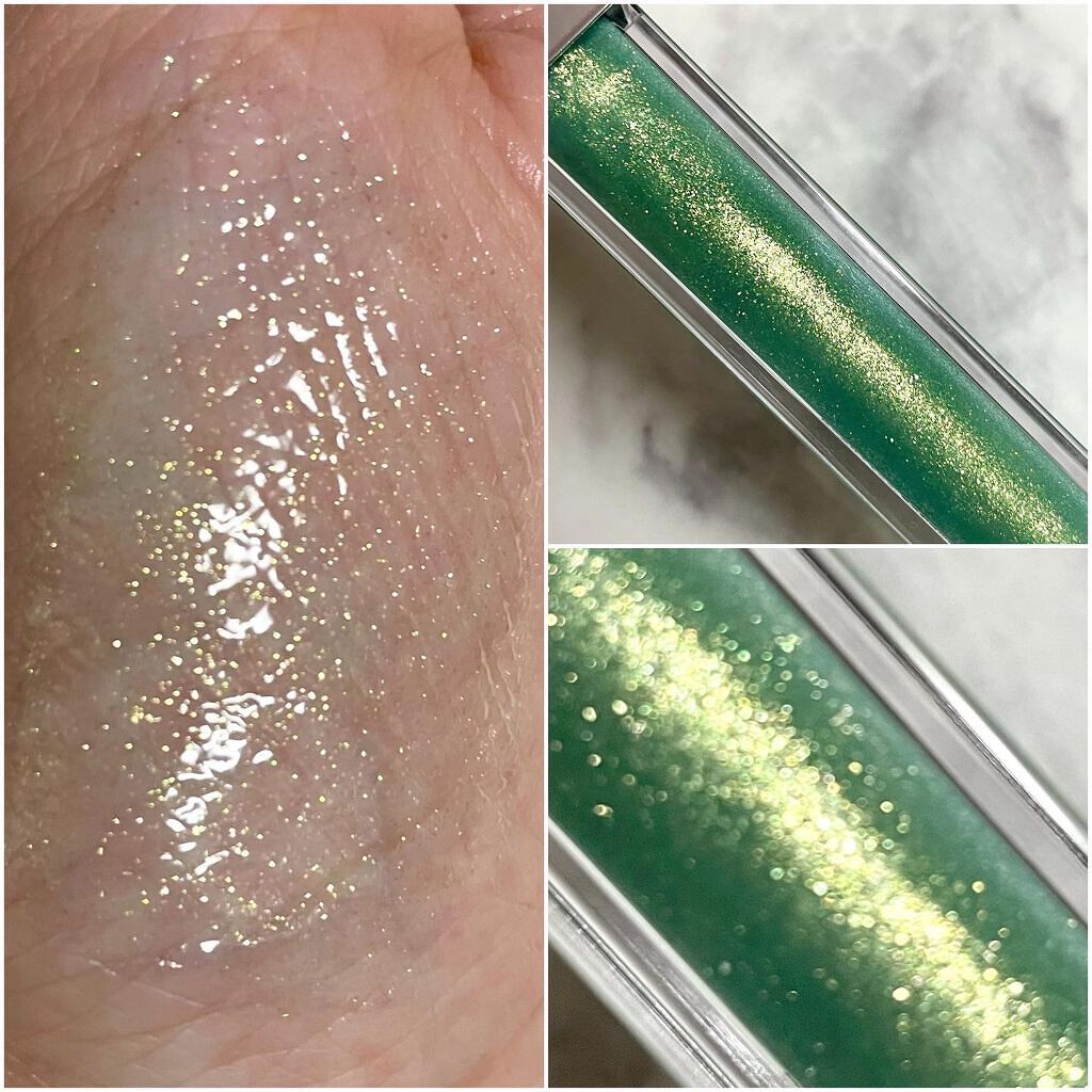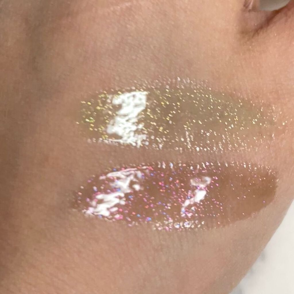 \かわいすぎて事件🤯💘⚡️濡れツヤハイライト/ 上品でキラキラのツヤが美しすぎると発売前から話題でしたね🙌 エナメル+キルティング加工のケースはツルツルぷにぷに♬ 薄型なので持ち運びにも便利!かわいいので無駄に持ち歩こう🙋♀️(?) 細かなピンクパールが温かみのあるツヤを演出してくれます💗 とてもしっとりしたパウダーで粉感がなく、繊細な輝きが長続きします👏 大粒の偏光ラメがギラギラ🤩🥳祭りじゃ〜!といった感じ笑 ホワイトカラーで輝きが目立つので濡れたようなツヤ感が出ます✨ マスクメイクでも頬骨より少し上のCゾーンに入れれば隠れずツヤ感が綺麗に映えます🥰 ラメが大粒で強いのでアイメイクの仕上げに入れても💮 結果万能なのとちょっと奇抜なの♥️ 両方文句なしにかわいかったので満足です🧚♀️笑