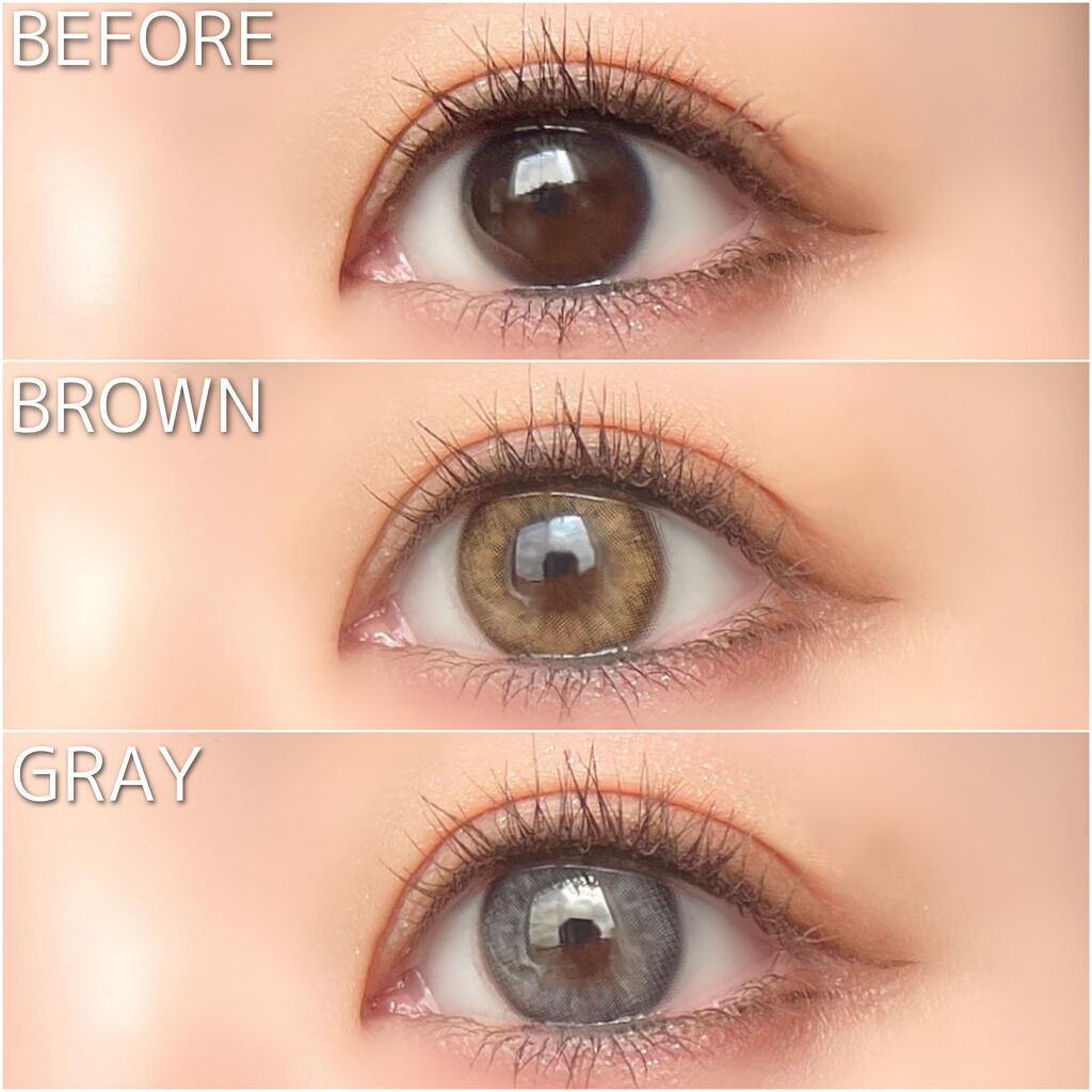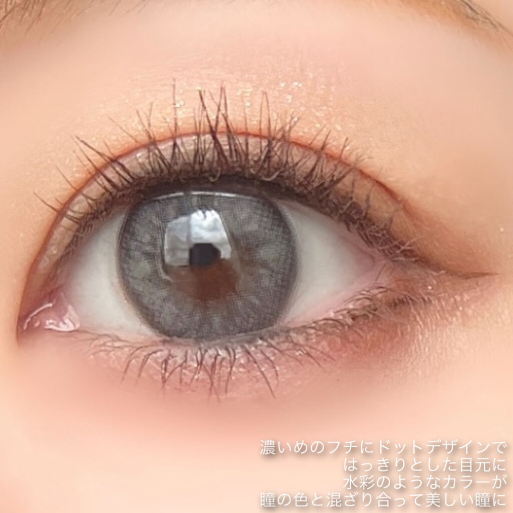 個性的なカラーからナチュラルなものまで幅広いラインナップで見てて楽しかったです! 透明感のあるブルーグレーが瞳に溶け込み、リアルなグレーアイに見せるレンズ。 透け感のある色味だけどしっかり発色するナチュラルハーフ系カラコン。着色直径も小さめなので着せ替え感があってかわいい。 N's COLLECTIONはレンズのつけ心地もすごく良くて他のカラーもとっても可愛いです!