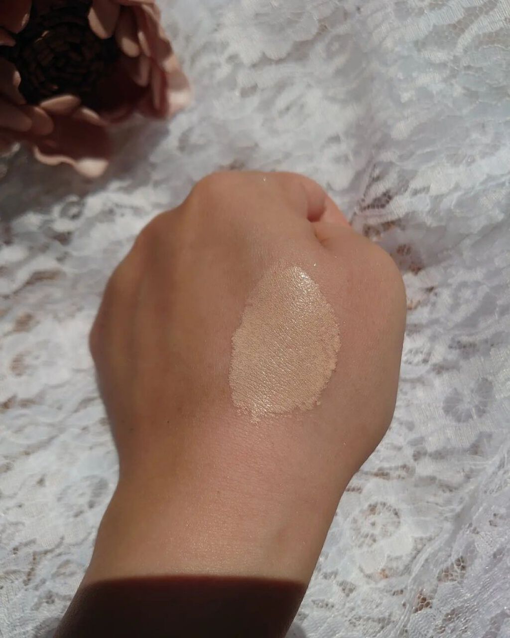 - シクロペンタシロキサン、水、ジフェニルシロキシフェニルトリメチコン、トリエチルヘキサノイン、PEG-9ポリジメチルシロキシエチルジメチコン、スクワラン、PEG-10ジメチコン、ジグリセリン、ジメチコン、シア脂油、ペンチレングリコール、BG、塩化Na、ジステアルジモニウムヘクトライト、トリメチルシロキシケイ酸、水酸化Al、トリポリヒドロキシステアリン酸ジペンタエリスリチル、(ジメチコン/ビニルジメチコン)クロスポリマー、ポリメチルシルセスキオキサン、(HDI/トリメチロールヘキシルラクトン)クロスポリマー、含水シリカ、フェノキシエタノール、ハイドロゲンジメチコン、ヘキサ(ヒドロキシステアリン酸/ステアリン酸/ロジン酸)ジペンタエリスリチル、トコフェロール、シリカ、アルガニアスピノサ核油、水溶性プロテオグリカン、加水分解コラーゲン、ダマスクバラ花エキス、オーキッドエキス、(+/)酸化チタン、タルク、酸化鉄