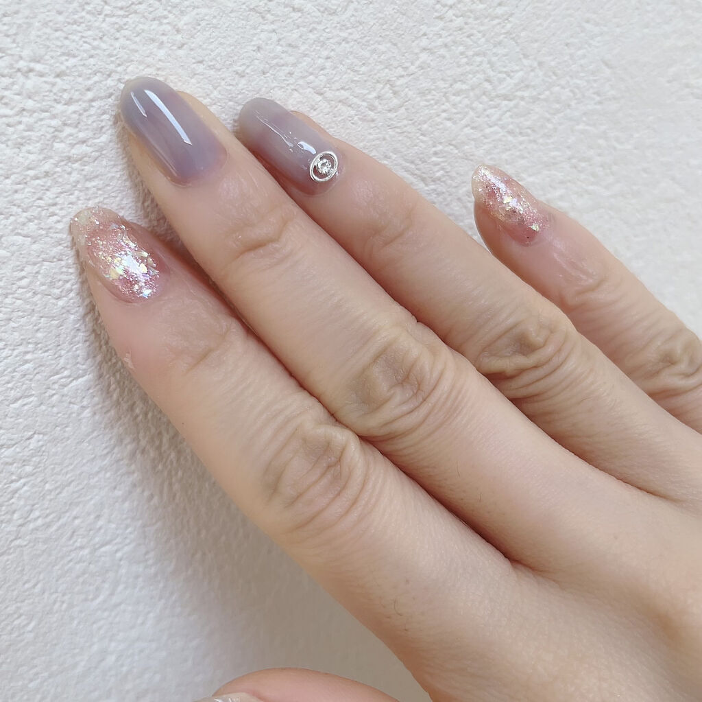 今回は2色一緒に💜🩶●パラドゥミニネイル PL08アサヤケソーダ (親指・薬指)透明感のある、上品なくすみパープル💜少し淡い感じにしたかったので乳白色のベースを使い、キャンメイクN29ミルクシロップを一度塗り後アサヤケソーダを丸フレンチっぽく...
