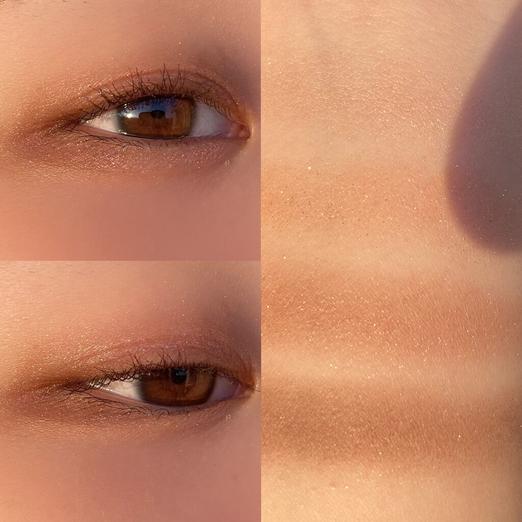 - <06 グレー系> 着色成分 タルク適量、〃 酸化チタン適量、〃 酸化鉄適量、〃 ホウケイ酸(Ca/Al)適量、〃 銀適量、〃 酸化スズ適量、油性エモリエント成分 トリエチルヘキサノイン10.50%、〃 リンゴ酸ジイソステアリル7.50%、〃 テトラ(ヒドロキシステアリン酸/イソステアリン酸)ジペンタエリスリチル3.00%、〃 ポリグリセリル-3ポリジメチルシロキシエチルジメチコン2.00%、感触改良成分 ラウリン酸亜鉛2.00%、防腐剤 メチルパラベン0.30%、〃 プロピルパラベン0.10%、製品の酸化防止剤 トコフェロール0.01%、基剤 マイカ全量を100%とする <36 ブラウンパープル> 着色成分 タルク適量、〃 酸化鉄適量、〃 酸化チタン適量、〃 ホウケイ酸(Ca/Al)適量、〃 銀適量、〃 シリカ適量、〃 グンジョウ適量、〃 赤202適量、〃 酸化スズ適量、油性エモリエント成分 トリエチルヘキサノイン10.50%、〃 リンゴ酸ジイソステアリル7.50%、〃 テトラ(ヒドロキシステアリン酸/イソステアリン酸)ジペンタエリスリチル3.00%、〃 ポリグリセリル-3ポリジメチルシロキシエチルジメチコン2.00%、感触改良成分 ラウリン酸亜鉛2.00%、防腐剤 メチルパラベン適量、〃 プロピルパラベン適量、製品の酸化防止剤 トコフェロール適量、表面処理剤 水酸化Al適量、基剤 マイカ全量を100%とする <61 ピンクベージュ> 着色成分 タルク適量、〃 酸化チタン適量、〃 酸化鉄適量、〃 ホウケイ酸(Ca/Al)適量、〃 シリカ適量、〃 銀適量、〃 グンジョウ適量、〃 酸化スズ適量、〃 金適量、油性エモリエント成分 トリエチルヘキサノイン10.50%、〃 リンゴ酸ジイソステアリル7.50%、〃 テトラ(ヒドロキシステアリン酸/イソステアリン酸)ジペンタエリスリチル3.00%、〃 ポリグリセリル-3ポリジメチルシロキシエチルジメチコン2.00%、感触改良成分 ラウリン酸亜鉛2.00%、防腐剤 メチルパラベン適量、〃 プロピルパラベン適量、表面処理剤 水酸化Al適量、製品の酸化防止剤 トコフェロール適量、基剤 マイカ全量を100%とする <70 ブラウン系> 着色成分 タルク適量、〃 酸化鉄適量、〃 酸化チタン適量、〃 ホウケイ酸(Ca/Al)適量、〃 銀適量、〃 酸化スズ適量、油性エモリエント成分 トリエチルヘキサノイン10.50%、〃 リンゴ酸ジイソステアリル7.50%、〃 テトラ(ヒドロキシステアリン酸/イソステアリン酸)ジペンタエリスリチル3.00%、〃 ポリグリセリル-3ポリジメチルシロキシエチルジメチコン2.00%、感触改良成分 ラウリン酸亜鉛2.00%、防腐剤 メチルパラベン0.30%、〃 プロピルパラベン0.10%、製品の酸化防止剤 トコフェロール0.01%、基剤 マイカ全量を100%とする <72 ブラウン系> 着色成分 タルク適量、〃 酸化鉄適量、〃 酸化チタン適量、〃 ホウケイ酸(Ca/Al)適量、〃 銀適量、〃 酸化スズ適量、油性エモリエント成分 トリエチルヘキサノイン10.50%、〃 リンゴ酸ジイソステアリル7.50%、〃 テトラ(ヒドロキシステアリン酸/イソステアリン酸)ジペンタエリスリチル3.00%、〃 ポリグリセリル-3ポリジメチルシロキシエチルジメチコン2.00%、感触改良成分 ラウリン酸亜鉛2.00%、防腐剤 メチルパラベン0.30%、〃 プロピルパラベン0.10%、製品の酸化防止剤 トコフェロール0.01%、基剤 マイカ全量を100%とする <73 ブラウン系> 着色成分 タルク適量、〃 酸化鉄適量、〃 酸化チタン適量、〃 ホウケイ酸(Ca/Al)適量、〃 銀適量、〃 酸化スズ適量、油性エモリエント成分 トリエチルヘキサノイン10.50%、〃 リンゴ酸ジイソステアリル7.50%、〃 テトラ(ヒドロキシステアリン酸/イソステアリン酸)ジペンタエリスリチル3.00%、〃 ポリグリセリル-3ポリジメチルシロキシエチルジメチコン2.00%、〃 トコフェロール0.01%、感触改良成分 ラウリン酸亜鉛2.00%、防腐剤 メチルパラベン0.30%、〃 プロピルパラベン0.10%、基剤 マイカ全量を100%とする <76 レッドブラウン> 着色成分 タルク適量、〃 酸化鉄適量、〃 酸化チタン適量、〃 合成フルオロフロゴパイト適量、〃 ホウケイ酸(Ca/Al)適量、〃 シリカ適量、〃 赤202適量、〃 赤226適量、〃 酸化スズ適量、油性エモリエント成分 トリエチルヘキサノイン10.50%、〃 リンゴ酸ジイソステアリル7.50%、〃 テトラ(ヒドロキシステアリン酸/イソステアリン酸)ジペンタエリスリチル3.00%、〃 ポリグリセリル-3ポリジメチルシロキシエチルジメチコン2.00%、感触改良成分 ラウリン酸亜鉛2.00%、防腐剤 メチルパラベン適量、〃 プロピルパラベン適量、表面処理剤 水酸化Al適量、製品の酸化防止剤 トコフェロール適量、基剤 マイカ全量を100%とする