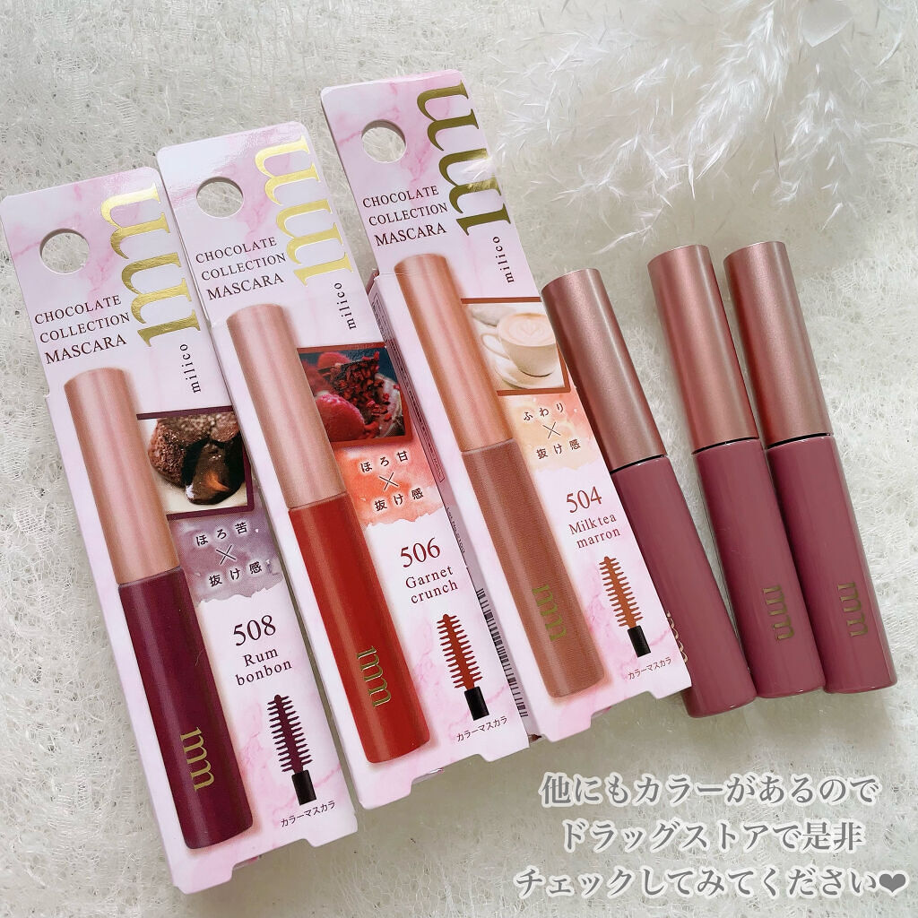 - プチプラコスメ「milico」より登場、抜け感が可愛いブラウン系マスカラ! かさばらないミニサイズ×速乾ロングタイプ。 1.使い切りサイズなので気軽にカラーが試せます 2.しっかりまつ毛をコーティングしてブラウンままつ毛に 3.速乾タイプのマスカラだから重ね塗りができる 4.ダマにならずまつ毛のカールをキープ