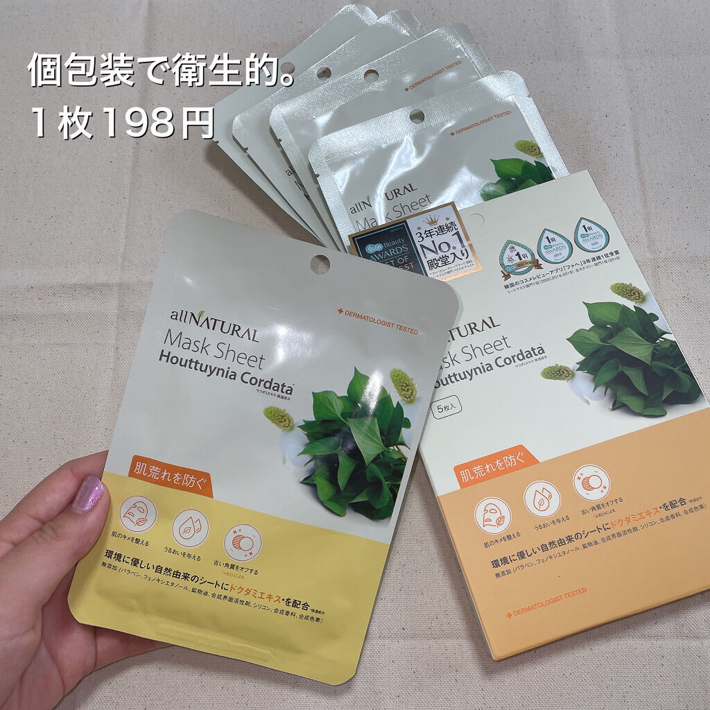 ...♡.allNATURALオールナチュラルマスクパックDK#コスメ購入品#正直レビュー肌のキメを整える、うるおいを与える、古い角質をオフする(ふきとりによる)シートマスク。肌への密着性が高く、環境に優しいユーカリ原料の自然由来シートを使用...