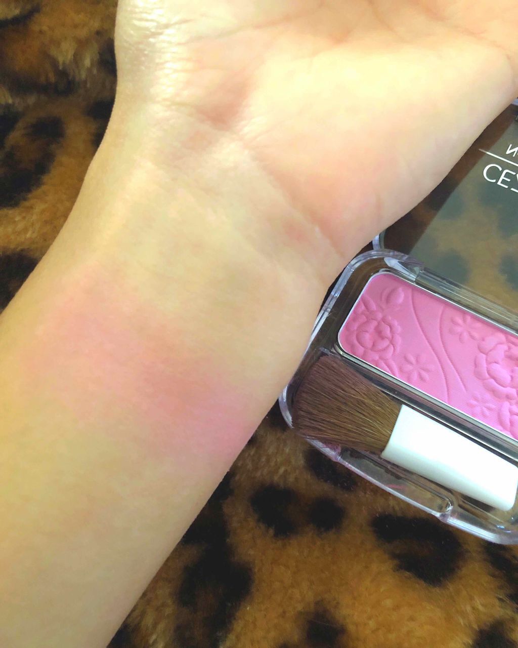 色味が絶妙にちょうど良くてかわいい〜🥰 ベージュだけどベージュすぎないから自然に血色感アップ💕 でもピンクすぎないから塗り過ぎ感もなく、めちゃくちゃ馴染みよく顔色良くなります! 粉質も粉飛びしないので良き👍🌟 付属のブラシは小さいながらもチクチクしない使いやすいブラシなので使い勝手も◎