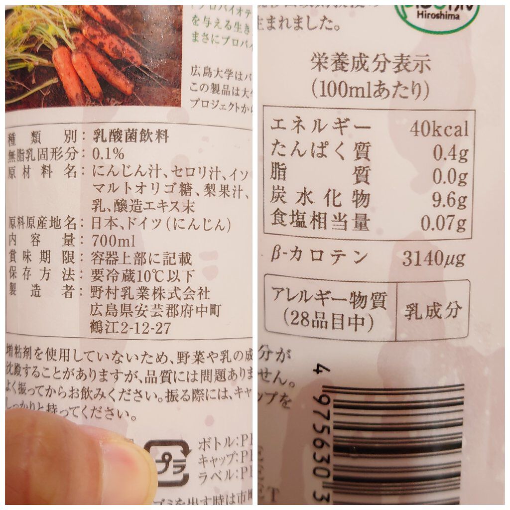 シンバイオティクスマイ・フローラは、1杯(100ml)に生きている植物乳酸菌が1,000億個なんだって!! にんじんの自然な甘みに乳酸の酸味がさわやかなプラントベースの発酵飲料で飲んだ所私は野菜ジュースやにんじんジュース好きだから好みの味だった! 香料、着色料、添加物不使用なのも嬉しい◎
