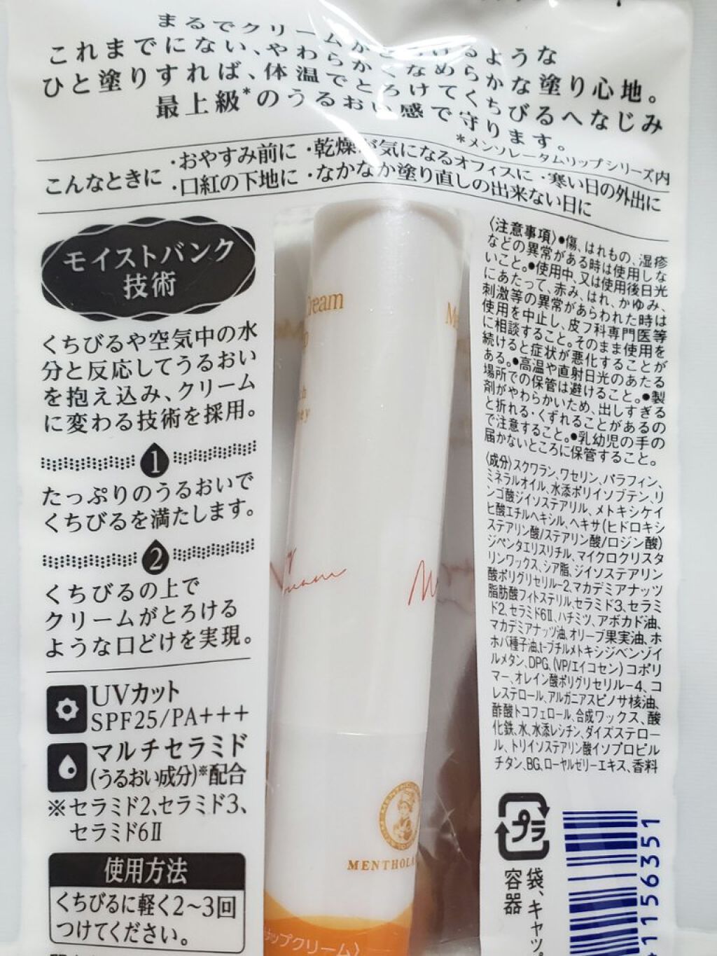 - くちびるや空気中の水分と反応してうるおいを抱え込み、クリームに変わる「モイストバンク技術」を採用。まるでクリームがとろけるような、これまでにない、やわらかくなめらかな塗り心地。ひと塗りすれば、体温でとろけてくちびるへなじみ、最上級*のうるおい感で守ります。 UVカット(SPF25/PA+++)。マルチセラミド(うるおい成分)※配合。*:メンソレータムリップシリーズ内※:セラミド3、セラミド2、セラミド6II