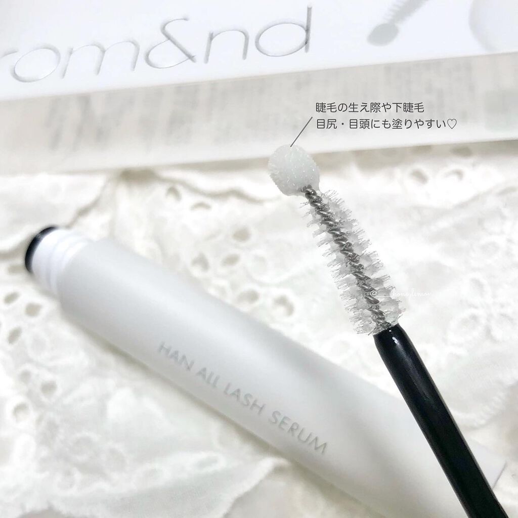 rom&ndハンオールラッシュセラム形状が塗りやすくて使いやすい👶まじでぜーんぜん安かったから(Amazonセールで1000円とか)期待せずに使ってたらちゃんと伸びた!!量とかはそんなに変わらない感じなんだけど明らかに長さがのびててすだれまつ...