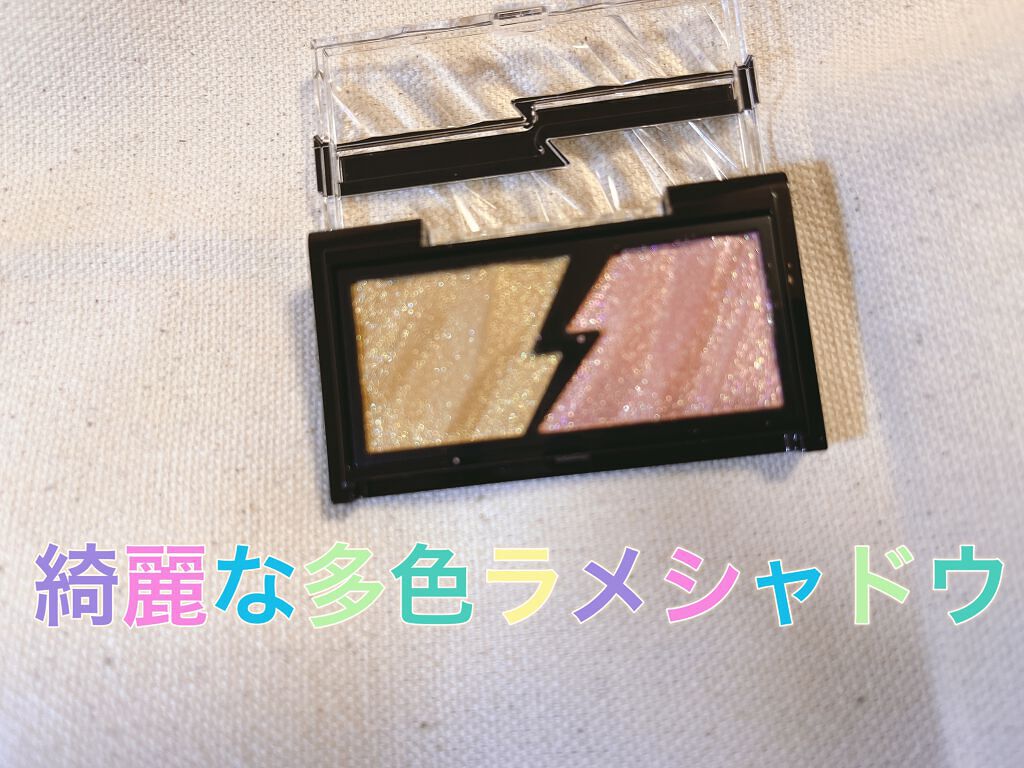 - 質感の違う2つの輝きで火花がクラッシュしたような発光感のある目元印象をつくるアイシャドウ。 まぶたにピタッと密着して、大粒ラメも落ちにくい処方設計。 繊細なカラーパールがきらめくエレクトリカルカラーと存在感のある大粒グリッターでまぶしい輝きを演出するフラッシュグリッターの2つの質感を掛け合わせて、輝き自由自在。 目元以外にも頬や鼻筋のハイライトに使える。