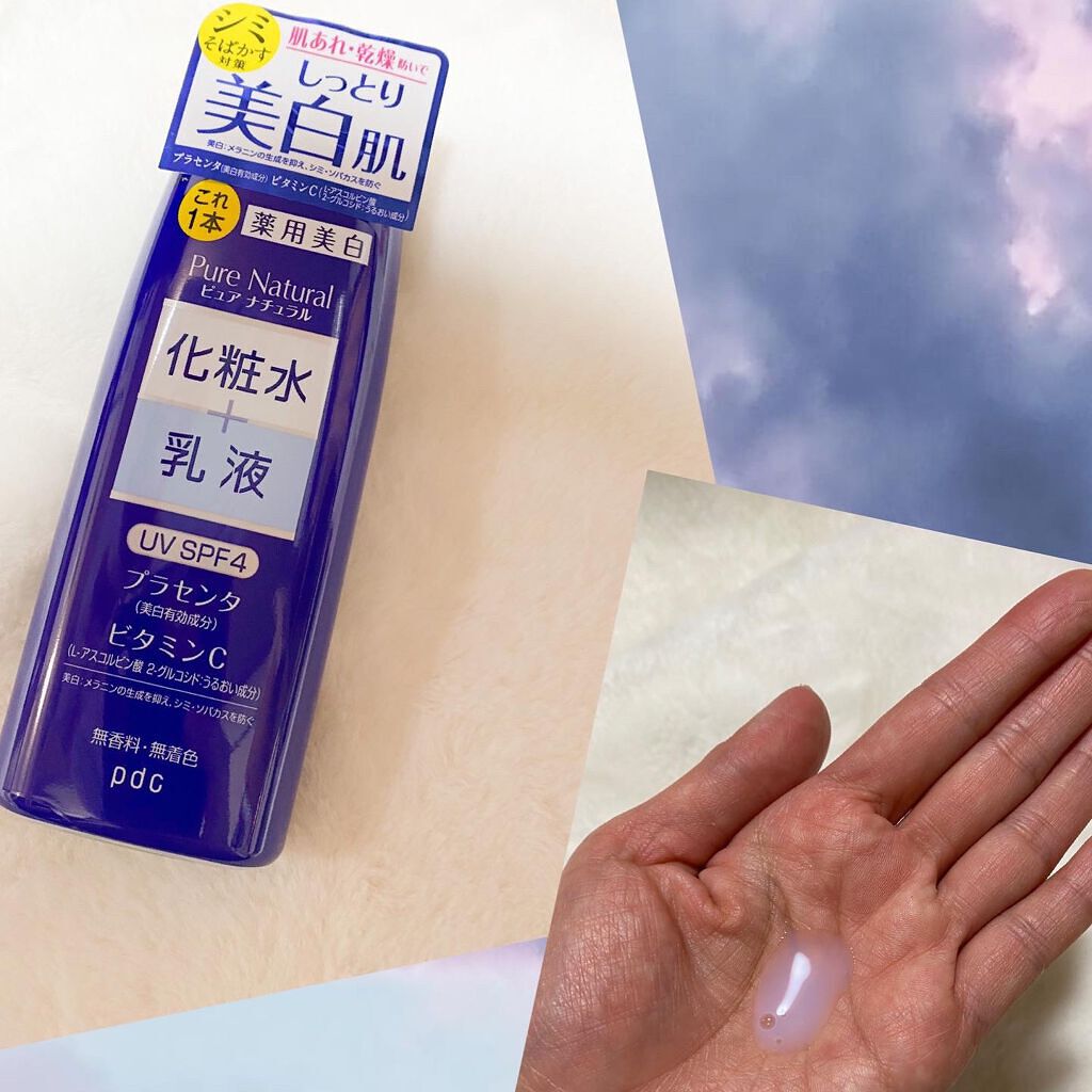 pdcピュアナチュラルエッセンスローションUVスキンケアをするのが面倒くさい時にとりあえずこれを使用してます😂❣️化粧水と乳液これひとつで乾燥対策にも✨乾燥による敏感肌にも🆗テクスチャーはとろっとしたみずみずしい乳液タイプ。肌馴染みがよくスー...