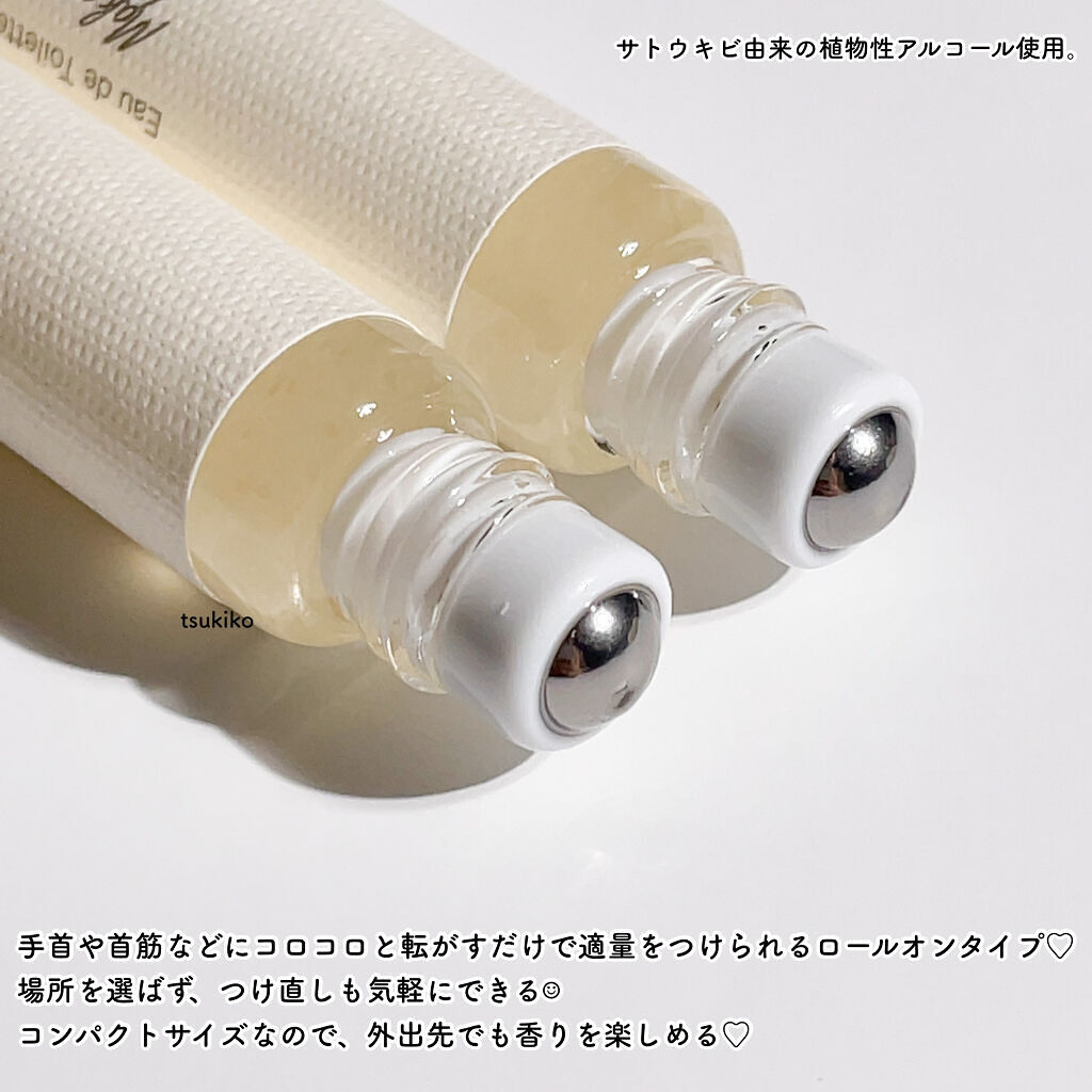 - ロールオンタイプのオードトワレです。 ポーチにも入れやすく、持ち運びに便利なサイズです。 少量でもしっかり香ります。 サトウキビ由来の植物性アルコール使用。 花々と柑橘系フルーツの爽やかな香り。 TOP:オレンジ・ベルガモット MIDDLE:リリー・ローズ・ジャスミン・ゼラニウム LAST:アンバー・ムスク
