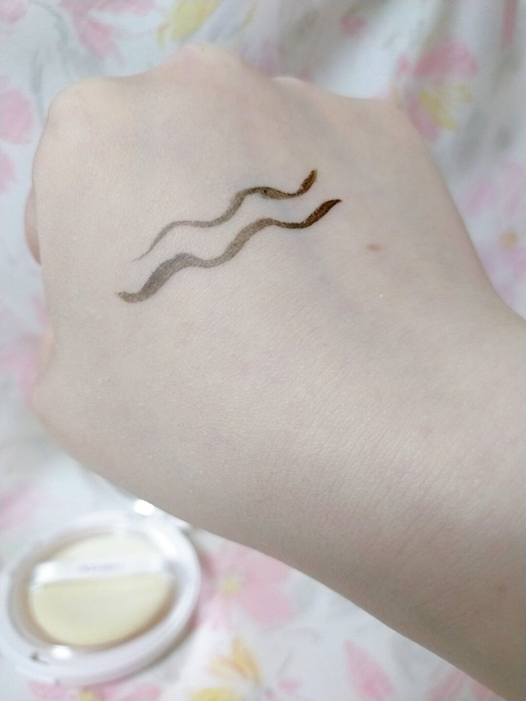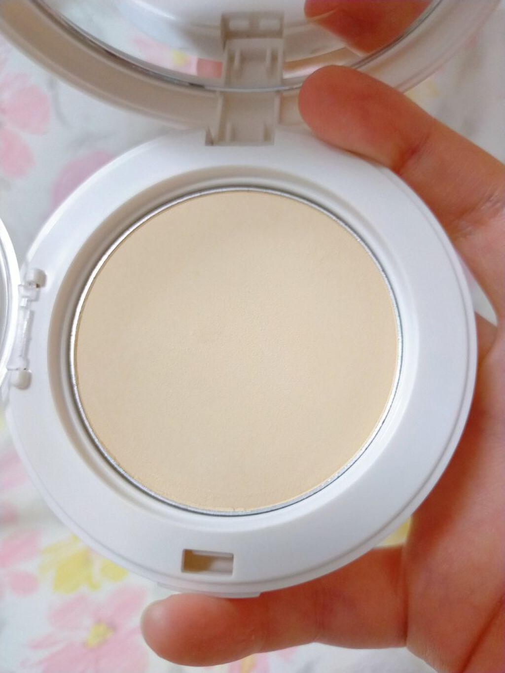 触るとぷにぷに、塗るとサラッとするフェイスパウダー。 ぷにぷになのでパフでそっと取らないと、ベタっとついてムラになりやすいかも。 色は白!私はどちらかというと色白だと思うのですが、それでもかなり顔が白くなってしまいました。 全顔には使えないので、明るくしたい所に部分使いしてみようかな。