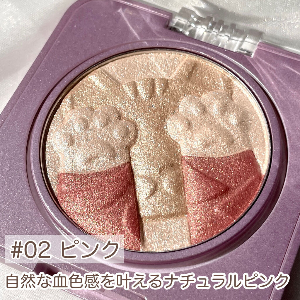 - 1つのパレットでハイライト・チークとして、マルチに使えるコスメ。 カラー展開も豊富だから、妥協無しで自分に一番ふさわしいカラーが見つかるはず! 01オレンジ:イエベさんにオススメ!元気いっぱい少女のような輝きを。 02 ピンク:ナチュラルピンク、自然な血色感を叶える。 03パープル:ブルべさんにおすすめ!透明感あるツヤ肌に仕上げます。 フリックして、天体のように360°回転するオリジナルケース。 星のように、キラキラ光るハイライト効果もあるので顔に上品なツヤ感と立体感を与えます。 ふんわり塗るだけで華やかな印象にしてくれるチーク!