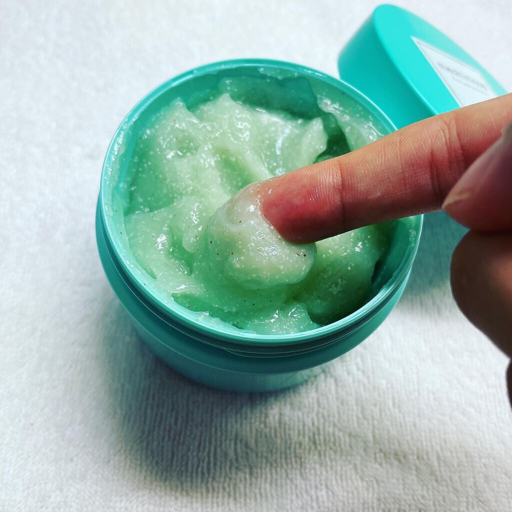 ひんやり気持ちいい、厚みのあるスクラブinジェルが肌にピタッと密着!約3分パックした後マッサージして洗い流すだけで、すべすべすっきり脚に。 まるでキウイみたいな種子スクラブ配合。マイルドなスクラブ感で優しく角質ケアし、ざらつくひざ・かかともつるん♩ 爽やかなハーバル感とフレッシュなキウイの香りで、気になる足先もすっきり! ぷるんぷるんのジェルの中に細かいスクラブが入っていて硬くなったかかともしっかりケアしてくれる気がする! そして洗い流した後が想像以上に冷んやりするので夏場に使ったら絶対気持ち良さそう。 かかとのガザガサが最近気になっていたので、使い続けたいと思います♩