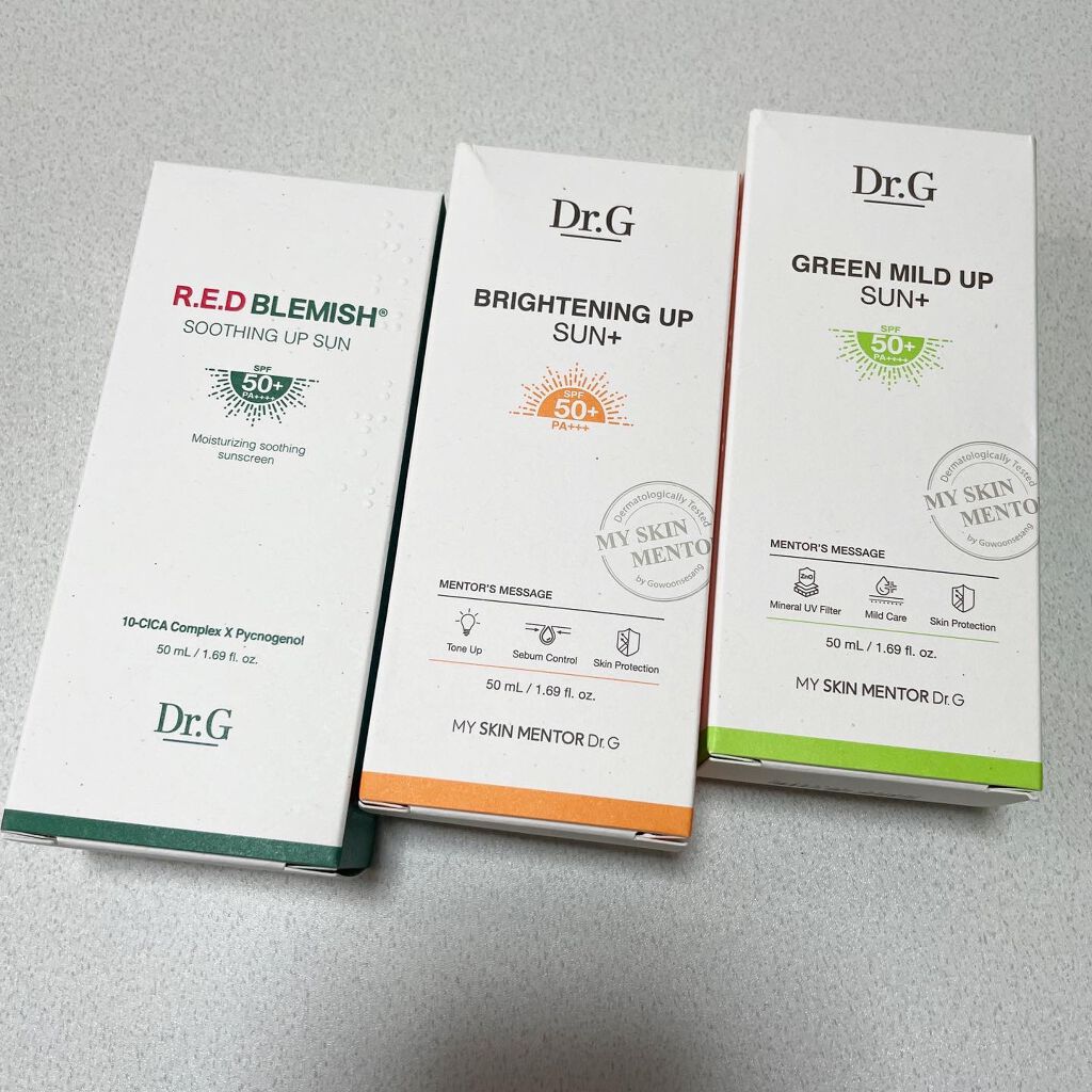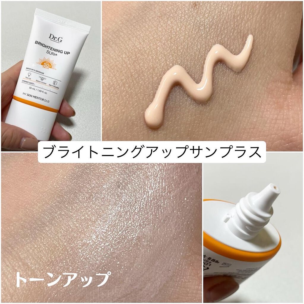 Dr.Gはクリームが本当に使い心地が良くて大好きな韓国のスキンケアブランドです🤍 ブライトニングアップサンプラスはピンクベージュカラーで下地として使うことも◎ 紫外線を肌に吸収せず、焼けない作りになっているそうです🩷 どちらもツボクサ、ドクダミ、プロビタミンDのスキンケア配合でお肌に優しい作りになってあるのが嬉しい😻 日焼け止めってピリピリしたりする事があるのですが、こちらはそんなことも無くとっても使い心地が良くてお気に入りになりました🫶🏻✨️