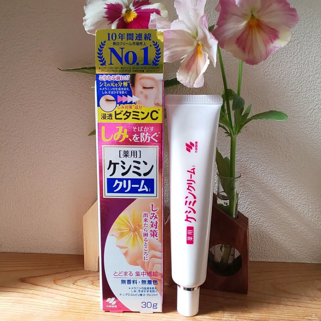ケシミンクリーム内容量:30gシミ対策※成分、ビタミンC誘導体※1がシミの元を分解※2しシミを防いでくれるクリームです。シミ対策※※メラニンの生成を抑え、しみ、そばかすを防ぐ出来たら困るところに部分使いするのはもちろん、顔全体にも使えるので就...