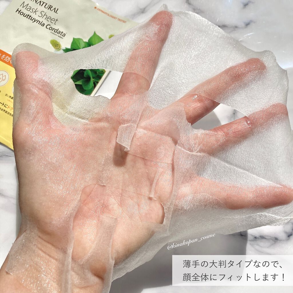 ドクダミエキス➡️肌荒れ防止・キメを整える 高分子ヒアルロン酸➡️保水力が高くバリア機能高める ノンコメドジェニックテスト 7つの有害化学物質 無添加 刺激テスト 完了 固めのシートで大きめサイズ 余っていた液の量はちょうどよく首まで保湿できる笑