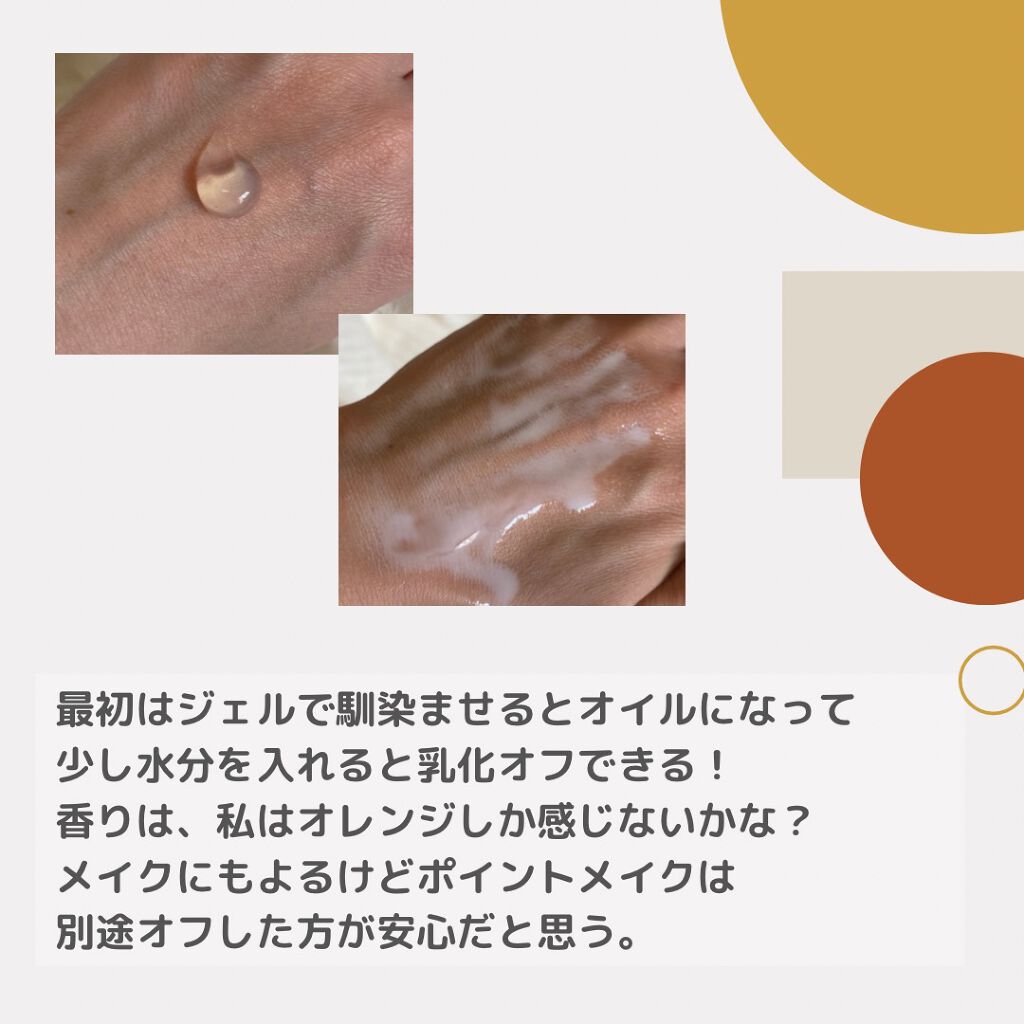 | もったりしたジェルで、伸ばすと厚みがあり、お肌を擦らず、優しくメイクオフできます。柑橘系の香りも癒されますよ♩ | 詳細を見る | ||