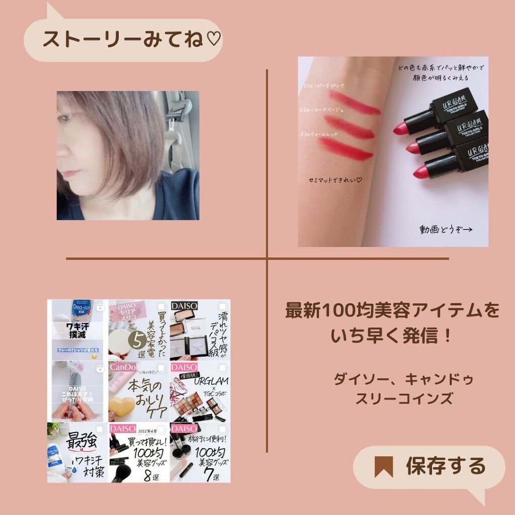 ダイソーコスメが買って正解(๑˃ᴗ˂)و💖💞 みなさんの買ってよかった100均コスメがあったらぜひぜひ教えてください💓 ここでは美容マニアが本音レビュー🧖♀️🧴 100均コスメ以外にも使ってよかったコスメをレビューしたりお得な情報もストーリーで発信中🎉・:*:・。