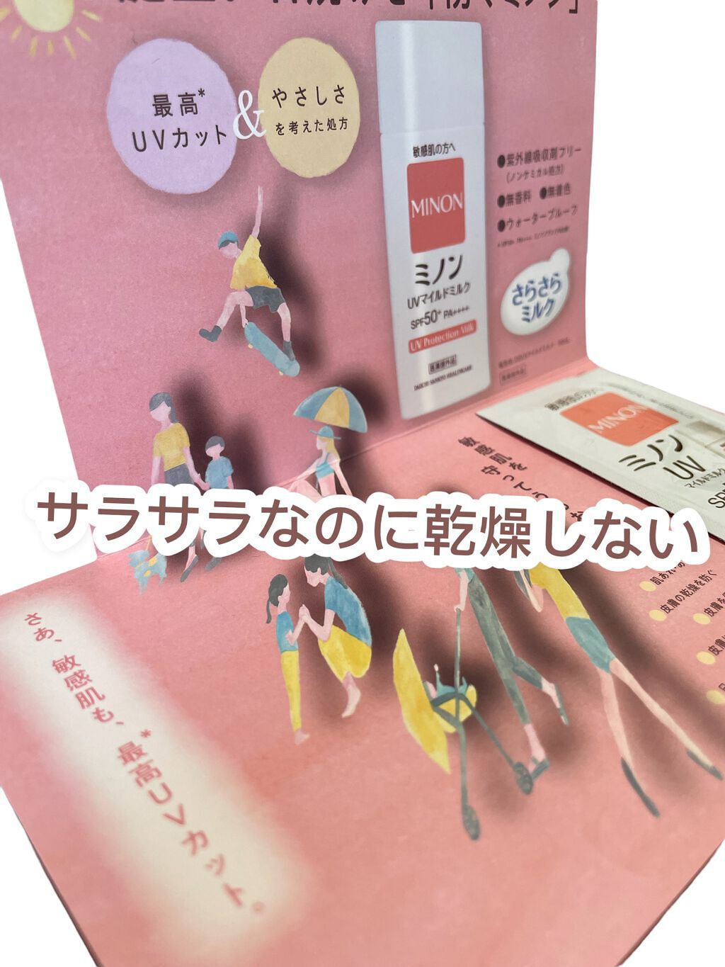 ミノン様から製品の提供をいただきました。「ミノンUVマイルドミルク」SPF50+・PA++++UV耐水性★★肌へのやさしさを考えた低刺激性処方‼️最高*UVカット効果を持つ日焼け止め。水につよいウォータープルーフ❕さらっとしてべたつかない乳液...