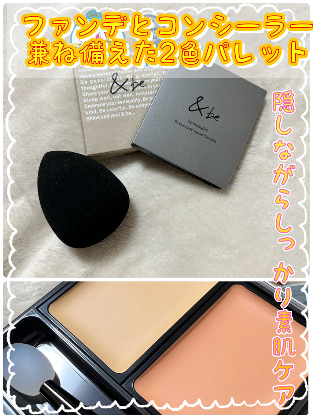 超時短でカバーしたいところが全てカバーできてしまい、感動しました💕 特にクマのカバー力が優秀でした。 オレンジ✖️ベージュのパワーがすごい✨ ライトベージュ&オレンジという色を頂いていて、少し明るいかな?と思ったのですが、自然にトーンアップしてくれる感じで使いやすいです。 時間がないけどしっかりカバーしたい!という方、おすすめですよ〜
