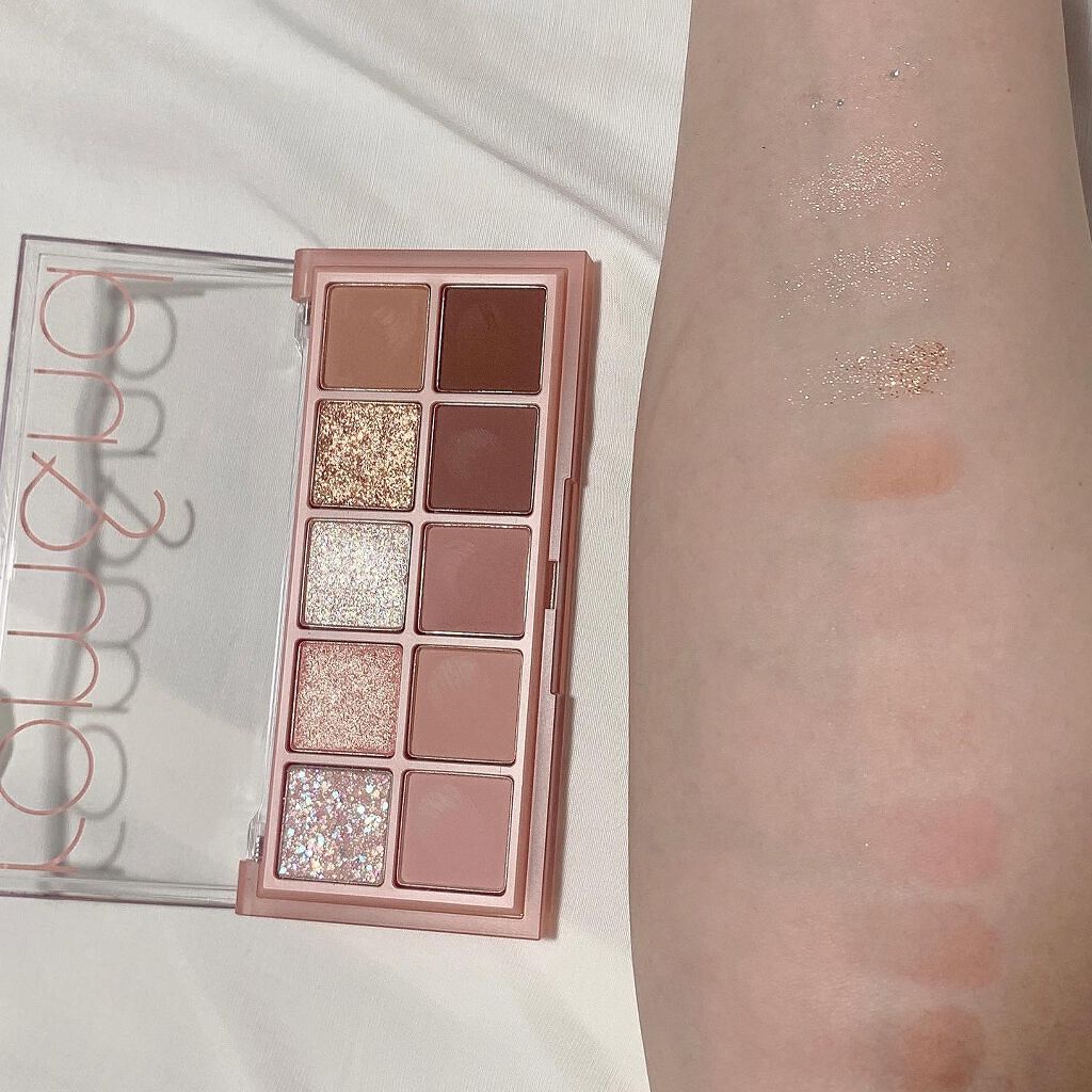 ロムアンド様のロムアンドベターザンパレットの03ローズバッドガーデンです🎀グリッターとマットの10色をセットになっているアイシャドウパレットです💭深みのあるブラウン系や甘さ引き立つローズピンク系の3種類がラインアップされています🌹単色のみで使...