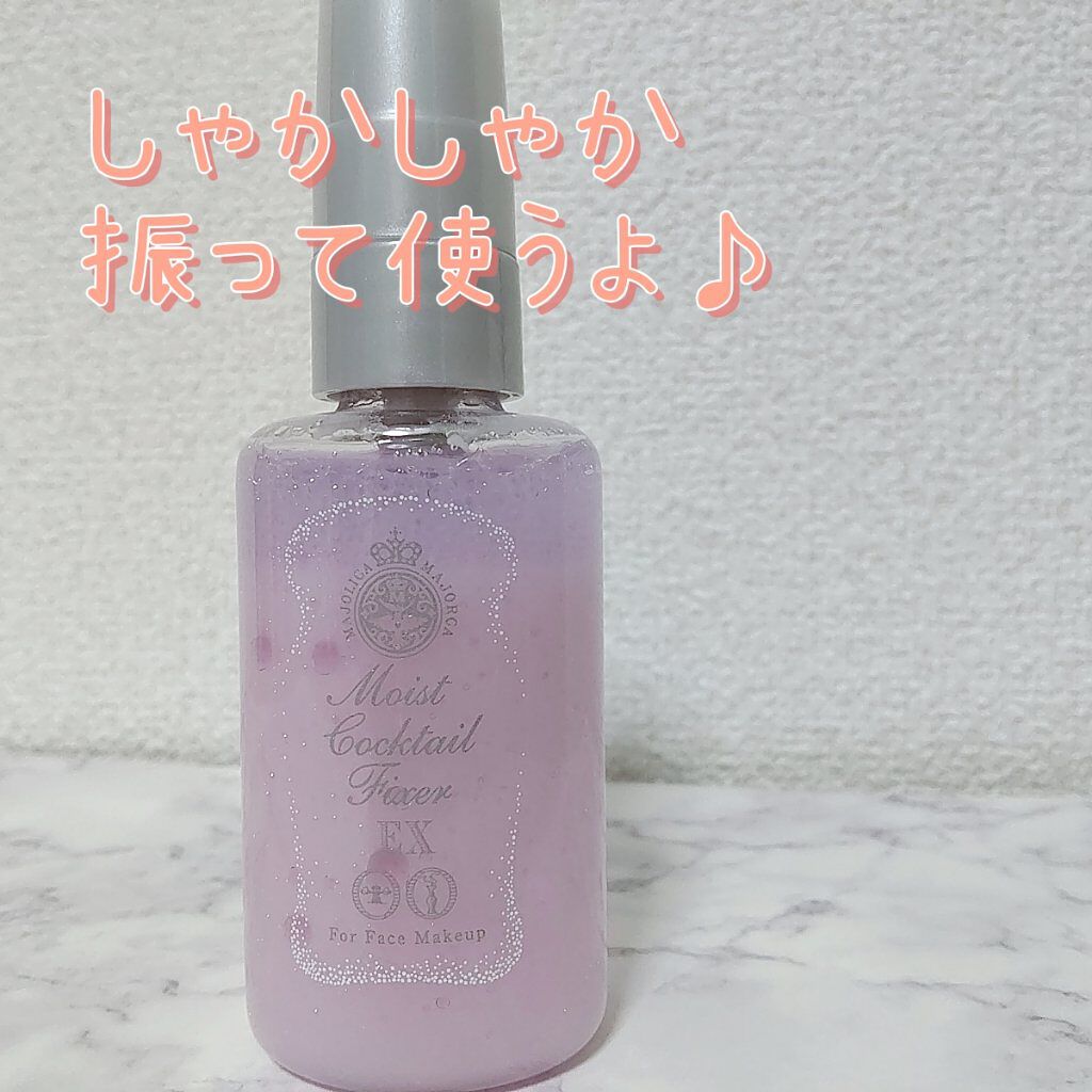 MAJOLICAMAJORCAモイストカクテルフィクサーEX【使った商品】モイストカクテルフィクサーEX【商品の特徴】¥1,320円(税込)60ml化粧水状おしろい(仕上げ用)【使用感】2層式で振るタイプのミストビシャってかかるが割と細かく馴...