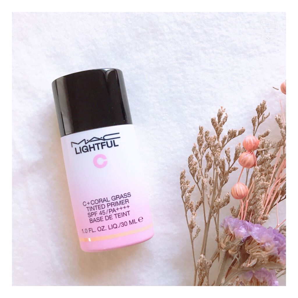 保湿感・ツヤ感・密着感◎ 【M・A・C/ライトフル C+ティンティッド プライマーSPF45】 緩めのテクスチャーで伸びが良いです◎ SPF45/PA+++++で紫外線対策もできてオススメ👾 保湿感があり、乾燥を感じにくくてお気に入り🫶🏻 ツヤ感が出て綺麗な仕上がりイメージ