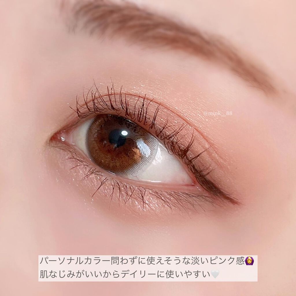 ほんのりピンクにブラウンのフチ デザインもナチュラルでふんわり盛れる🤍 くすみピンクと大きめのグラフィックで ガーリーな雰囲気に🎀 くすんだアッシュ系で垢抜けた瞳に♡ 透明感のある儚げなピンク♡ ピンク初心者さんにもおすすめ!