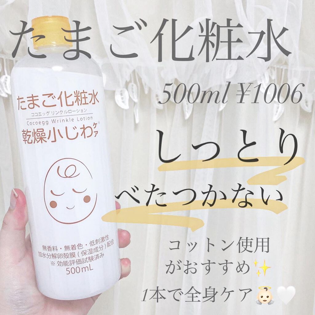 - 2023年4月3日リニューアル発売 「たまご化粧水」は卵由来の天然成分「加水分解卵角膜エキス」配合の化粧水です。 しっとりしているのにベタつかない感触でお肌になじみます。 顔や全身にも使える大容量タイプなのでお風呂上りにたっぷりお使いいただけます。 コットンなどにたっぷり含ませて5分ほどパックするとさらに効果的です。 無香料、無着色、低刺激性、オイルフリー、界面活性剤フリーです。