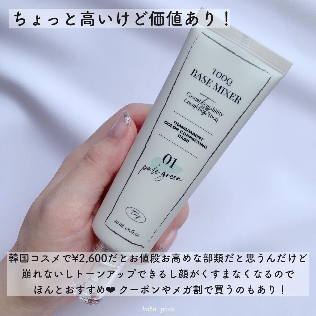 実力派グリーンベース🌿tooqのカラー補正下地が優秀すぎた✨️赤みが気になる日に使ってるのがtooqトランスペアレントカラーコレクティングベース01フェイルグリーン🌿テクスチャはややもたっと重めでしっかり密着するタイプ。軽さやみずみずしさは...