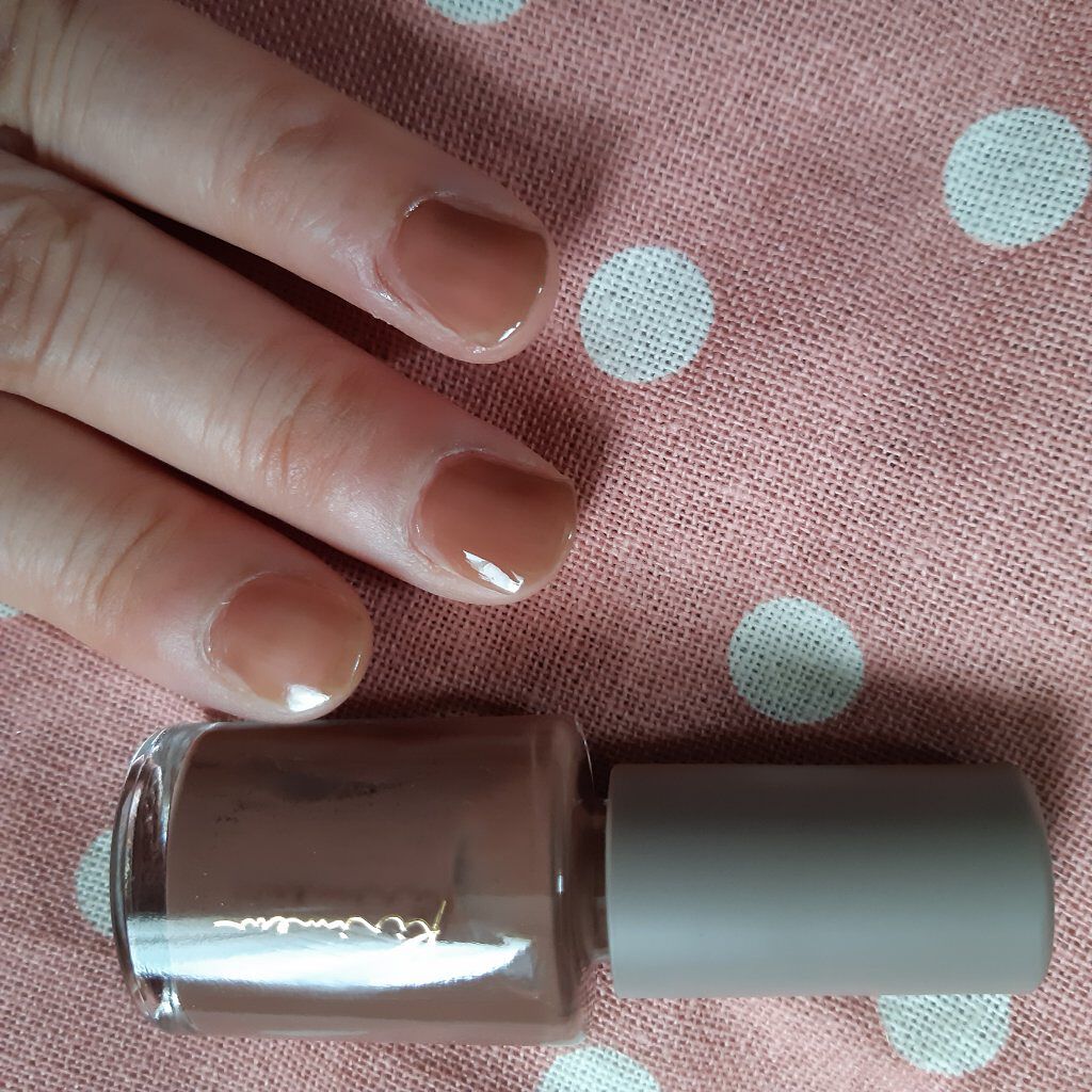透け感がかなりあるので柔らかいホワイトネイルになります🥰 重ねてつけることで発色も増して、私は三度塗りの透け感と発色がちょうど良くて好み💖 驚いたのが速乾具合!! 今まで使ってきたネイルポリッシュの中で1番乾くの早いって思いました!! サイズ感も小さめでコスパもいいので、他のカラーも買います😍