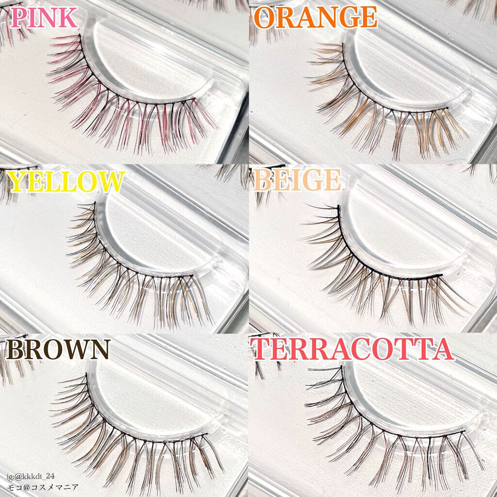 - 光にあたると透けるような発色で、カラーエクステの“透明感”が簡単に叶う、『カラーラッシュ』。 目もとに馴染む絶妙なバランスでMIXしたカラーは、顔から浮かず自然な仕上がりに。 カラーの透明感で目もとをふわっと軽く魅せます。 ピンク・オレンジ・イエロー・ベージュ・ブラウン・テラコッタの全6色。