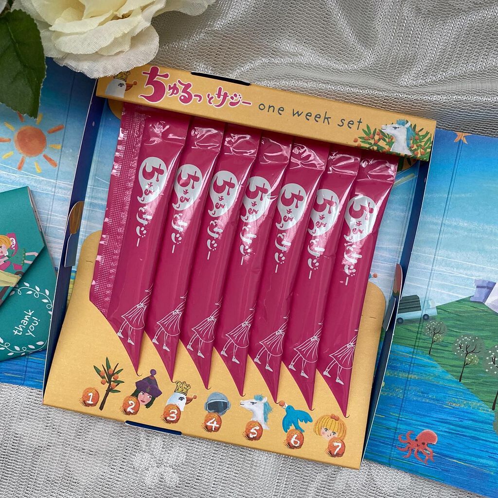 サジー(シーバックソーン)は、ユーラシア大陸原産で、オレンジ色の小さな果実をもつグミ科の植物。 とても寒い山岳地帯や砂漠でも潤いを無くさない果実には、200種類以上の栄養素を蓄えていて、「森のくすりばこ・スーパーフルーツ」と呼ばれているんだそぅ😳 「ちゅるっとサジー 」はその恩恵をいつでもどこでも摂れるよう、スティックタイプになっているんです🙌 さっと封を切って、新鮮なままの「濃厚サジーペースト」で気軽に鉄分補給✨ でも舐めてみると酸味と同時にほんのりはちみつの甘さが合って大丈夫でした🙌 そのままちゅーっともいいけど、プレーンヨーグルトに混ぜた方が美味しく頂けました😋 梱包の段ボール。パッケージ。こんな可愛い健康食品ありますか⁉︎
