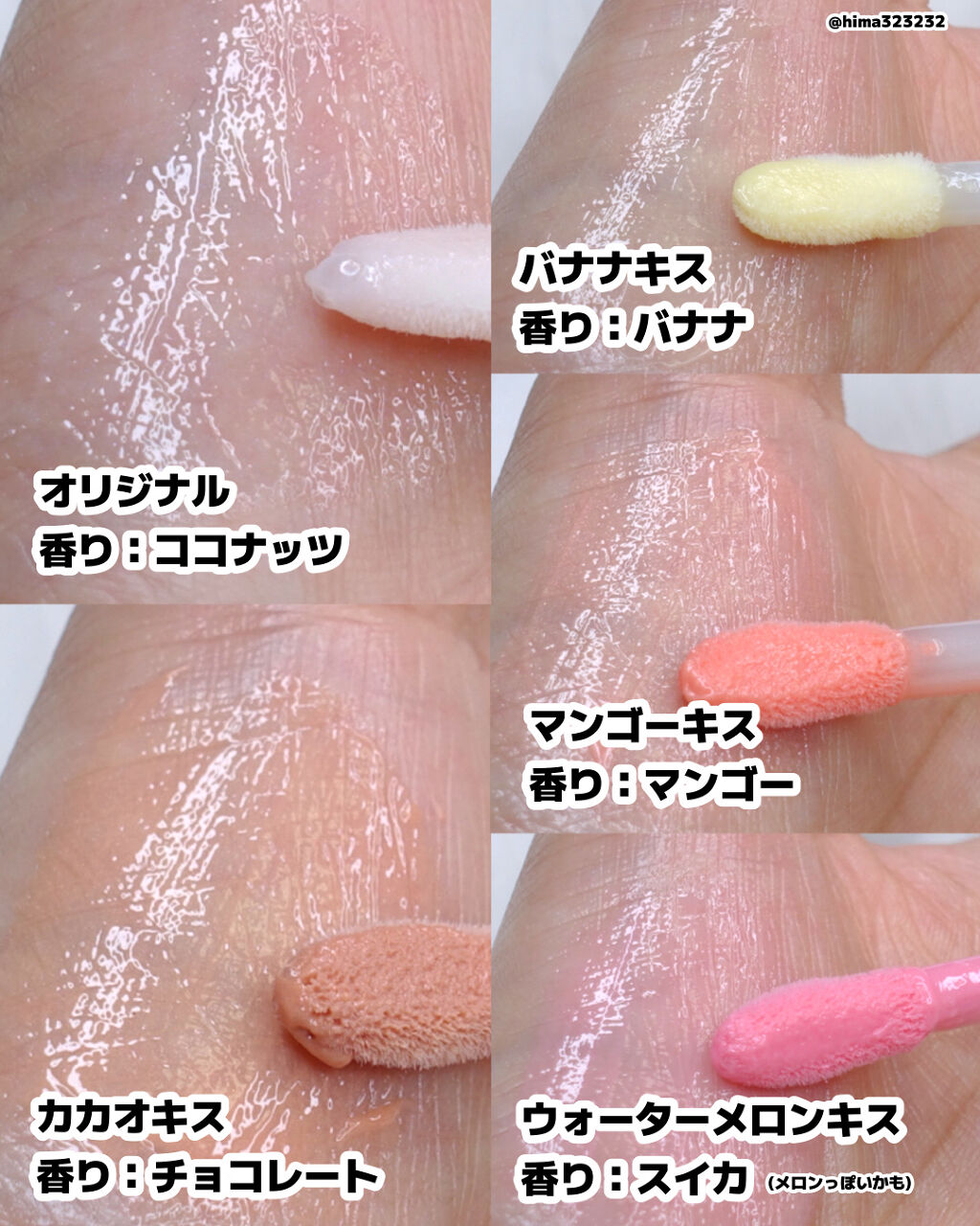 色はオリジナルで色はつかないタイプです❤️ これめちゃくちゃ甘い匂いがして好きです😍苦手な方はいるかも😫 唇にのせるとスースします。 アプリケータは大きめかな😎 私はリップ塗る前に塗ってます☺️ ぷるんぷるんなる💋