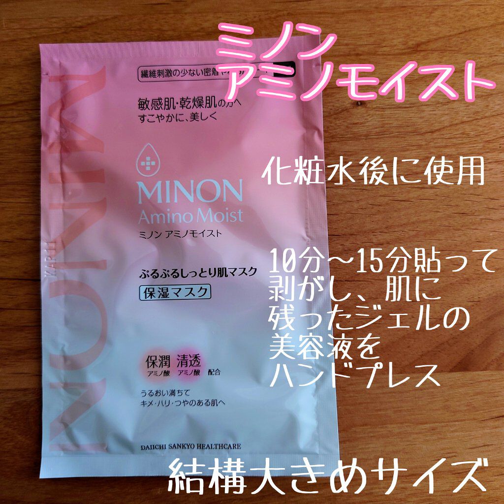 - 思わず触れたくなるほどみずみずしい肌へ。うるおって透明感。 乾燥による小ジワを目立たなくします(効能評価試験済み) 水分を保つ機能が低下しがちな角質層に、バリア機能をサポートする保湿成分を補給 ぷるぷるジェルがしみこんだ密着やわらかシートで、液ダレしません ◎ミノン アミノモイストのシートマスクは化粧水で肌を整えた後にお使いいただく「美容液マスク」です。 週に1-2回のスペシャルケアとしておすすめです♪