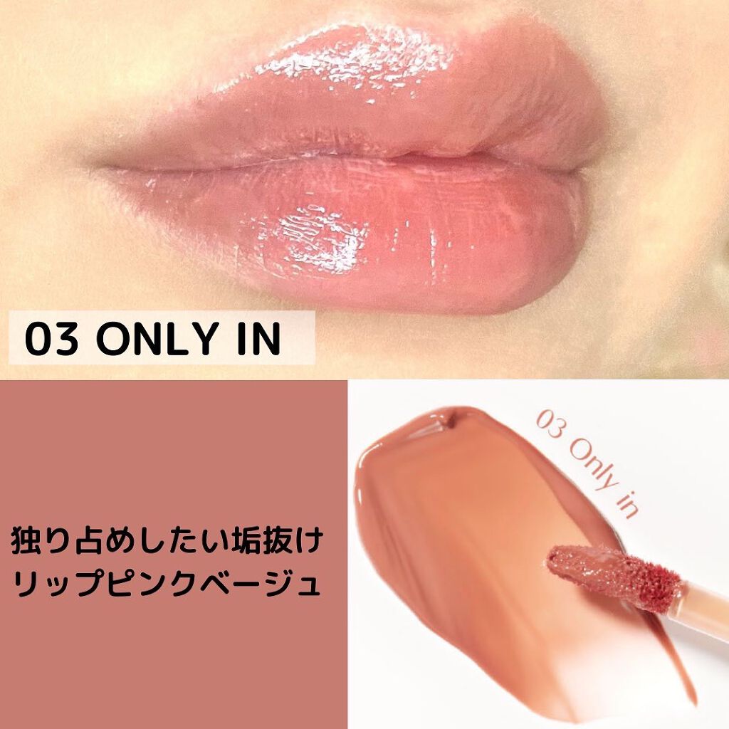 - 軽やかなテクスチャーで瑞々しく広がる水膜リップティントです。時間が経つとさらに綺麗になるナチュラル発色。ほのかな光沢と潤いのウォーターリー艶リップ。淡くも華やかにも、重ねるほど瑞々しいカラー感。透明感ある発色のまま、長時間ラスティング。