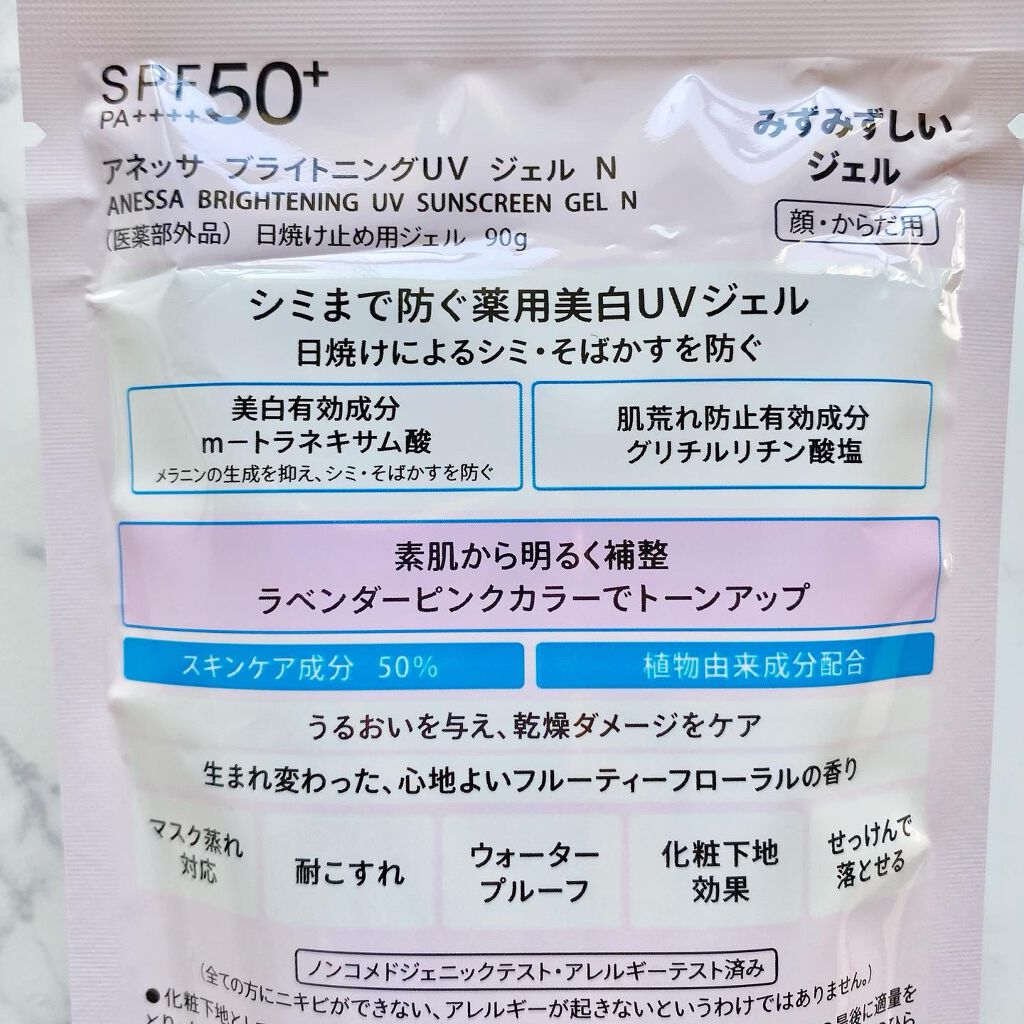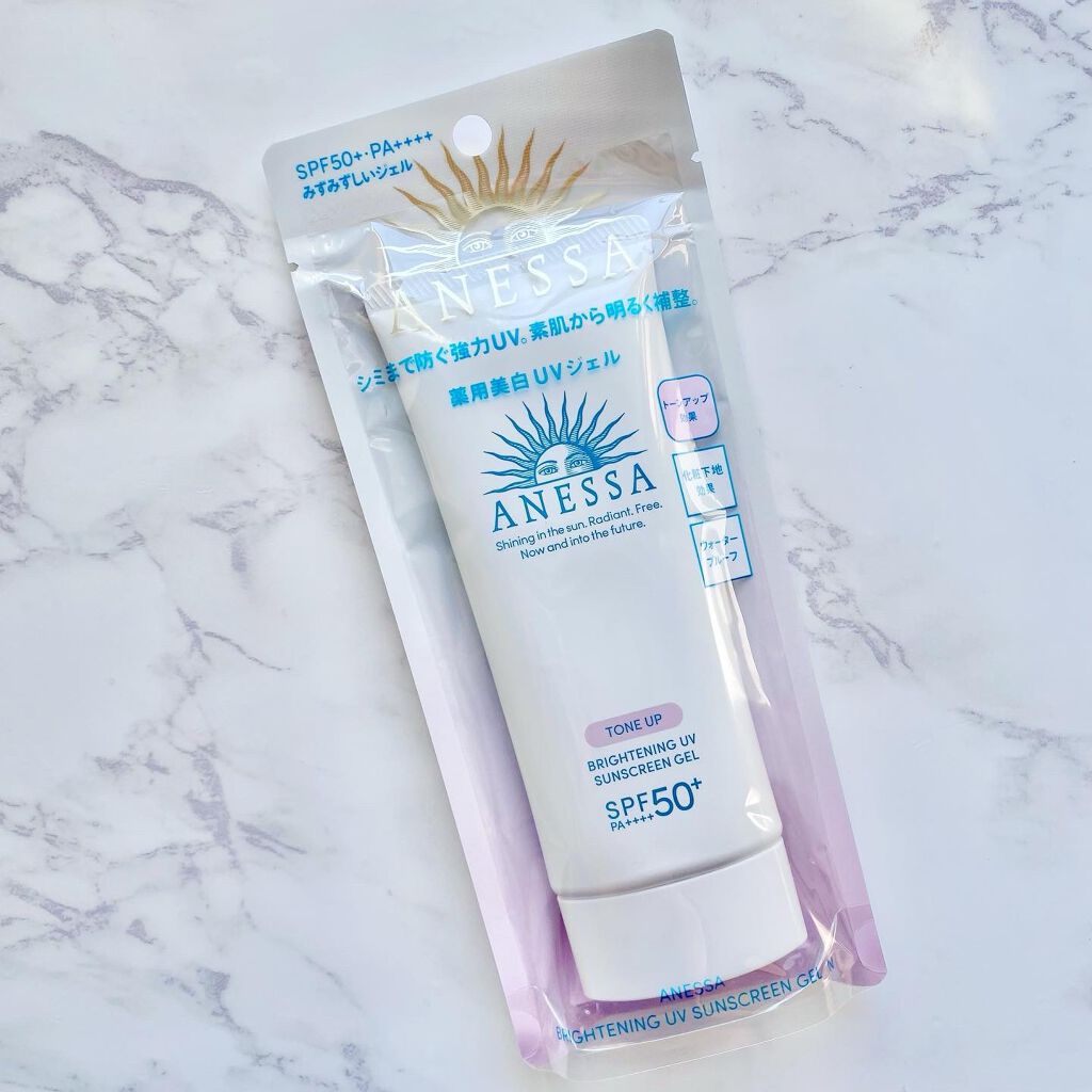薬用美白成分でシミ予防✨#アネッサ#ブライトニングUVジェルN#ANESSA薄いラベンダー色で、#トーンアップ効果抜群🤍伸びが良くて、自然な美白に! #くすみを消して、血色感アップ⤴️なんとなく良い香りがするなと思ったら、フルーティフローラル...