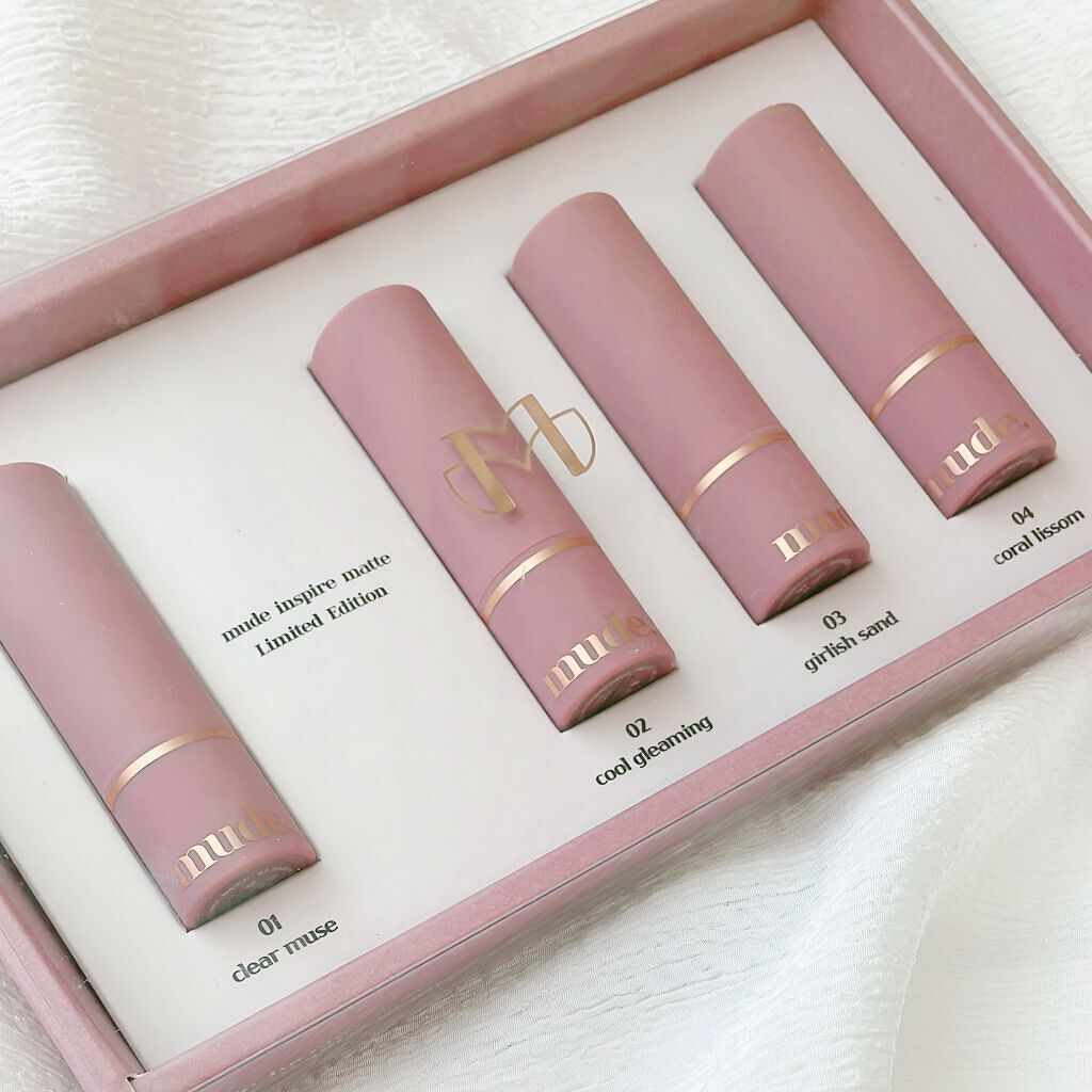 mudeだけの技術で完成されたシフォンマットリップ💄 スムーズに塗れて、羽のように軽い使用感👼 シアバターで保湿し、はちみつエキスで保護をする🐝 色のつきが良く、見た目の綺麗な色がそのまま発色する💓 なじみやすいカラーで、もとから血色の良い唇みたいに!! マットな質感で、着け心地はとてもサラサラ🌟 ・ティントじゃないのに軽いマットなテクスチャー🌈 ・フタがマグネットで、ピタッと止まる🥺 ・保湿してから塗らないと縦じわが目立つかな…💦(薄付きでもかわいい💞)