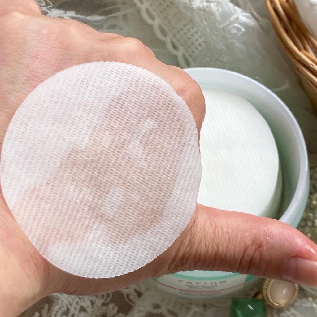 FATIONとは🇰🇷 韓国を代表する製薬会社 東亜製薬が手掛けたブランド。 医薬品で培われた技術を 化粧品に応用した コスメシューティカル ブランド♪ 特許を取得した マイクロバイオーム成分配合 かなり大判なパッドで 開けると驚きの量の エッセンスがっ!!! 顔全体を拭き取っても まだひったひたで そのままプレーン面で 部分パックを楽しんだり ガーゼ面でデコルテまで ケアを楽しむことも🙆♀️✨ 敏感肌さんにもおすすめなだけあって とっても優しいテクスチャーだけど 潤いはしっかり実感♪ パケも可愛いから 集めたくなるFATIONでした♡