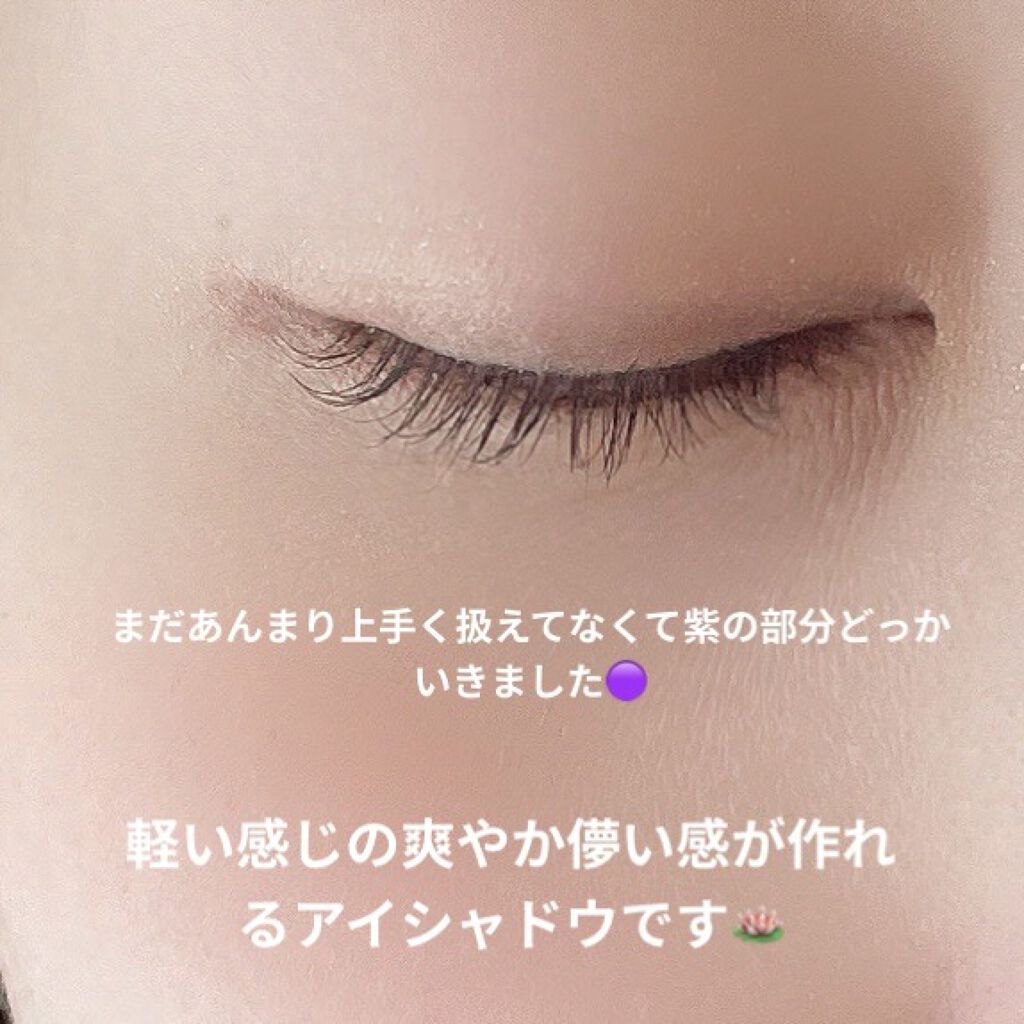 使い方を裏面に書いてあるものから大幅に間違えました。が、結果なんか良い感じになりました。 右上のオレンジを全面に使うことで重くなりすぎず夏っぽくなる気がします🍊 それぞれのラメのきらめきが上品で高級感があります👏 個性的な色の集合に見えて、重ねてみると良い感じに混ざってキレイな色味を作れるのが良いですね🫧🙌