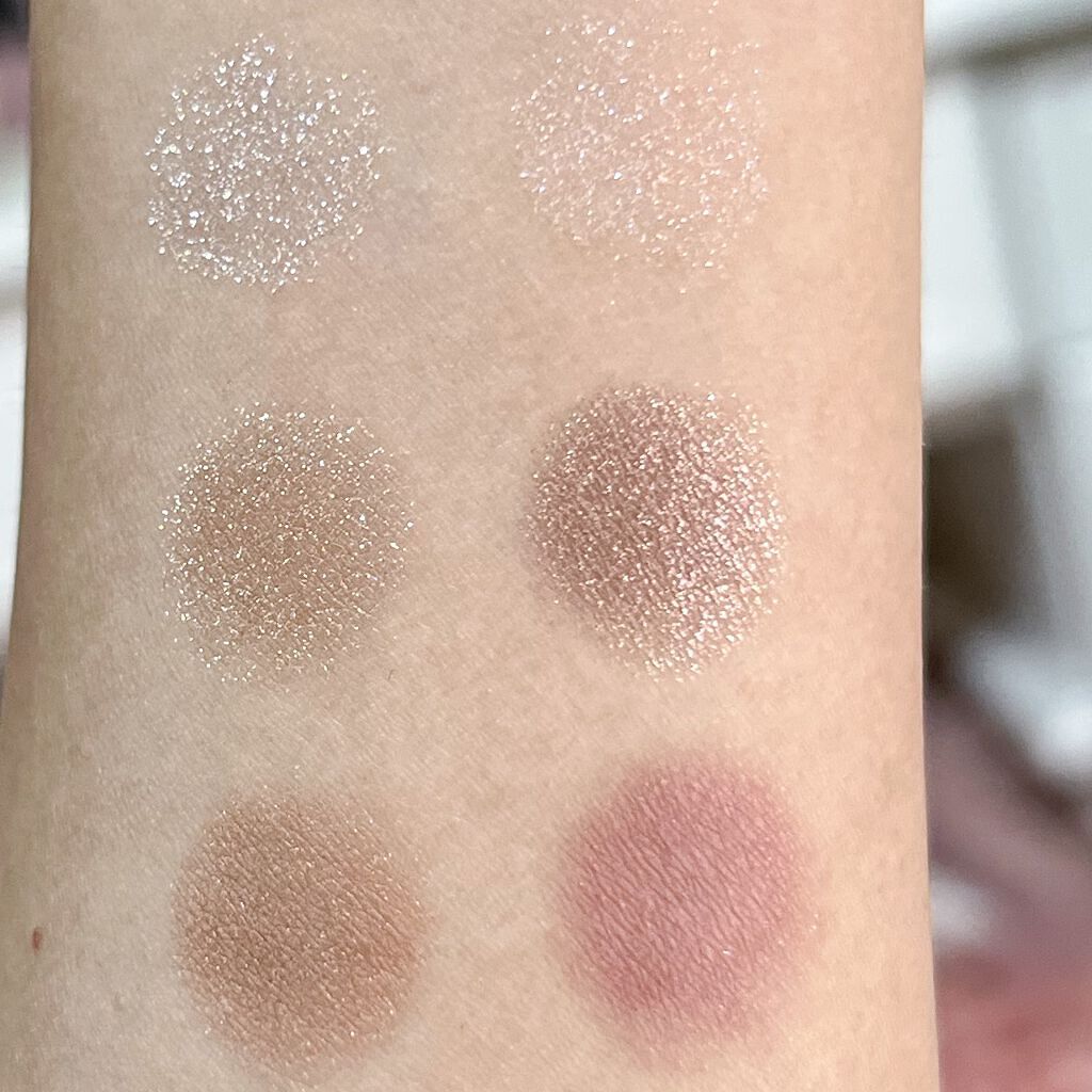 左上が細かいパールが入っていて目のくすみを飛ばしてくれる涙袋にのせるとめちゃくちゃぷっくり綺麗 右上はアイブロウに涙袋ラインにも使えるケバくならないようなお上品なカラー 左下ラメがナチュラルに透明感を与えてくれるような、上品な色ときらめき 右下ハイライトはめちゃくちゃつやんってなる! 左上のくすみが絶妙で使いやすいけど可愛いコーラル 右上は赤み強すぎず使いやすく感じた 左下ラメが可愛いカラー!嬉しい密着力! 右下ハイライトの肌なじみが良くて使いやすい