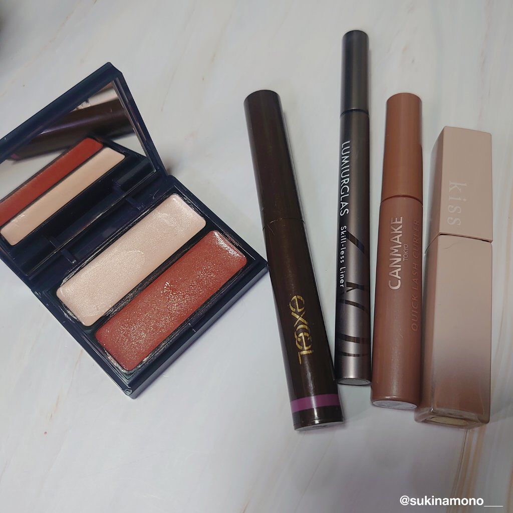 ベースに使ったのはexcelグリームオンフィットシャドウGF06ワイングラス重ねたラメはRMKRMKインフィニシェイドシングルアイシャドウ17シャワーローズラインは締めずにキャンメイククリーミータッチライナー15カプチーノピンク を使いました...