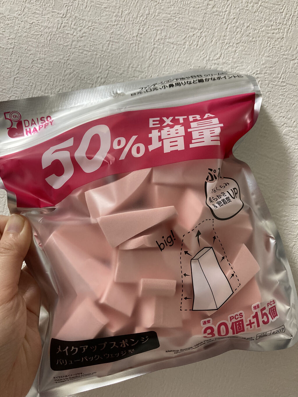 DAISO メイクアップスポンジ(バリューパック ウェッジ型 30個) | 110円 |