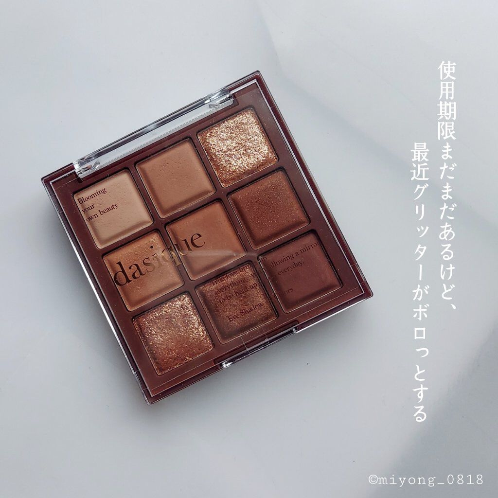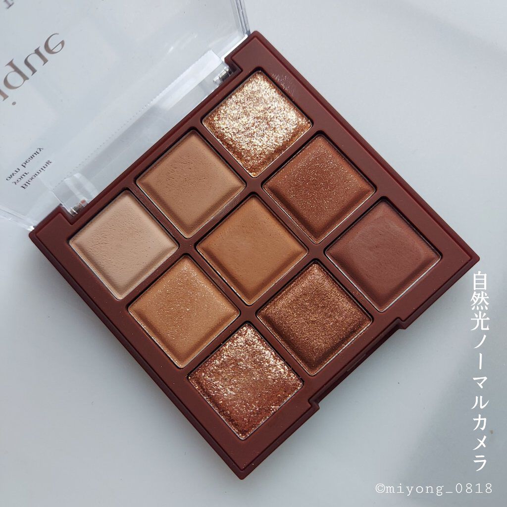 マットやラメ、グリッターまで多彩なカラーの9色パレット🎨 粉質柔らかく、マットのカラーに関しては発色も淡いから、重ね塗りすればするほど深みが増していき、濃淡も調整しやすい🥰 グラデーションメイクするならぴったりのアイシャドウパレット🫶🏻 ラメもきらきらで可愛いし、組み合わせも自由自在で思いのままにメイクできる万能パレット❣️ 見た目も可愛いし、持ってるだけでテンションが上がるパレット🐰 メガ割でまた買い足さないと💭