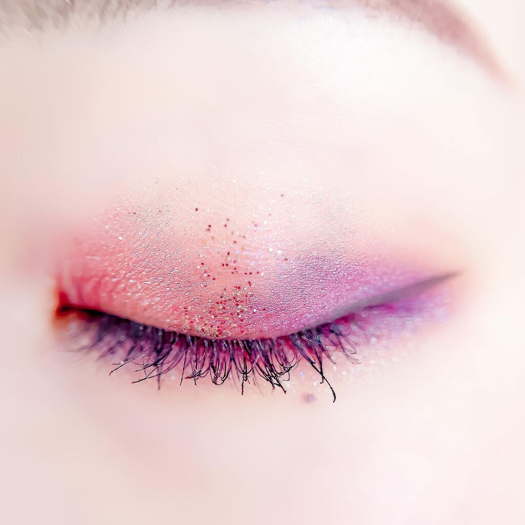 ベースに右上、目頭から黒目上に真ん中、黒目〜目尻に右下を、左上を目頭にくの字に塗ってもらいました✨ ピンクサクラよりもクールな感じで、目で見た色より私の肌では紫っぽく発色しました😍 上2つはラメはぎっしりでときめく💓 ブラウンメイクがとても苦手だけれどこれならブラウンメイク出来そう👌(かなり紫寄りですが) くすみ感は強いので苦手な方は厳しいかも…(特に真ん中) クールな印象になるので大人顔さん向けor大人顔になりたい方向けのイメージです✨