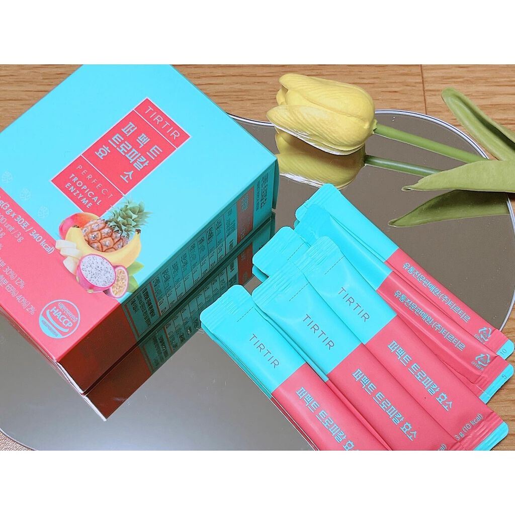 【TIRTIR】✔︎パーフェクトタートチェリー酵素モニター企画に当選しお試しさせていただきました!✔︎こちらは1日1〜2包をそのままか熱くない飲み物サラダなどと摂っても🙆♀️サラサラの粉なので初めは水に溶かして飲んでみたのですが水に溶かすよ...