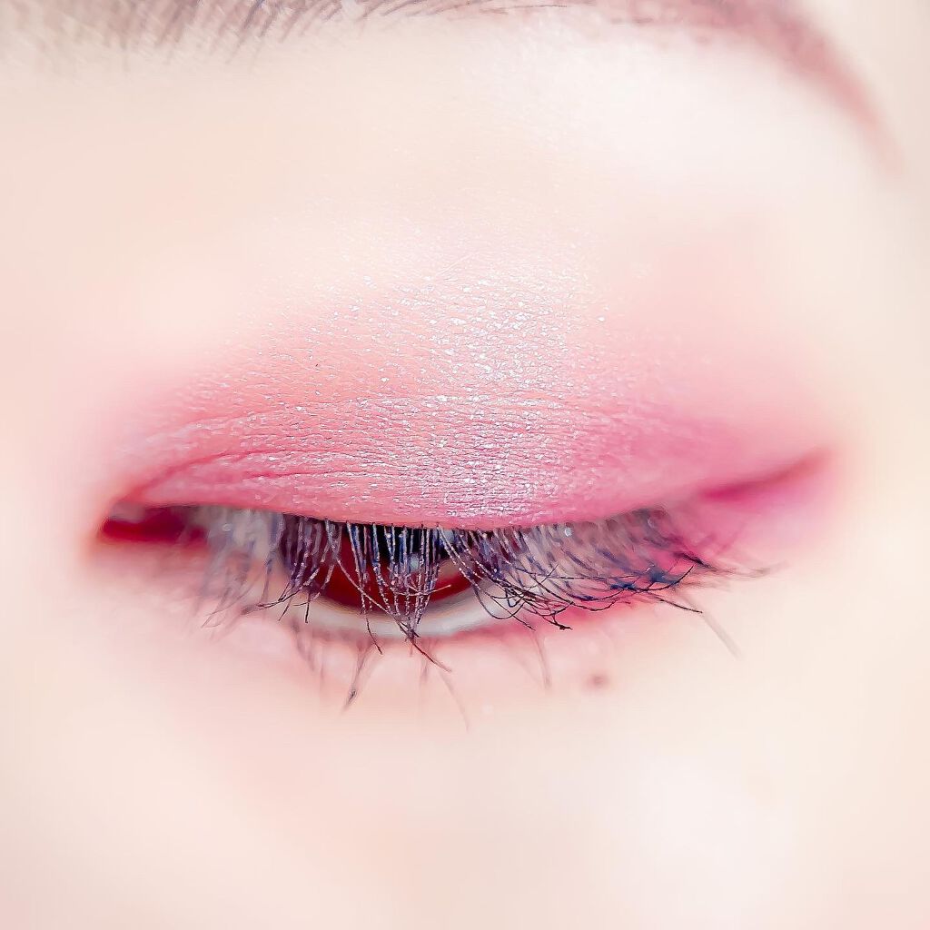 ピンクにグレージュも良いですね👌💗 今日は可愛らしい感じにしてみました💕 上下瞼黒目〜目頭側にラメを塗ってキラキラさせております🤩 目尻はマットのピンクを濃いめに重ねて💗 グレージュのアイライナーと相性◎